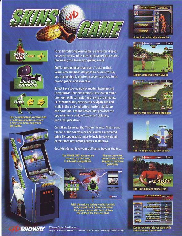 SKINS GAME Golf 2000 Original Video Arcade Game Promo Sales Flyer Vintage Retro