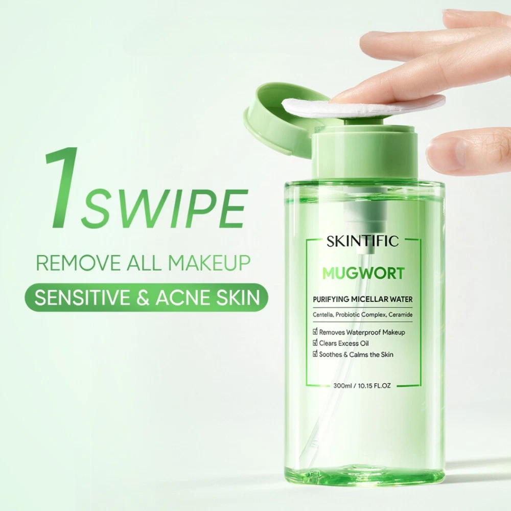 SKINTIFIC Mugwort Purifying Micellar Water Cleansing Oil Micellar water with Mugwort, Centella, and Ceramide content, cleanses the face from dirt, even waterproof makeup, while maintaining the skin barrier. Cleans waterproof makeup in 1 swipe, without leaving residue, dirt, and oil on the face, leaving a moisturizing, non-sticky, or greasy feeling on the skin. With pump packaging, it's more hygienic and easy to use. Size: 300 ml / 10.14 fl oz BPOM Number (Indonesian FDA) : NA11231201019 Benefits: ● Cleanses waterproof makeup ● Helps remove dirt and oil from the face ● Leaves a moisturizing feeling on the skin ● Maintains the skin barrier Suitable For: Sensitive, Dry, Oily, Acne-Prone, Pore, & Combination Skin Product Keywords: Facial cleanser, Makeup remover, Micellar water, Skintific micellar water, Cosmetics, Cleanser Hero Ingredients: Mugwort: Moisturizes and helps prevent acne Centella: Soothes facial skin Ceramide: Maintains the skin barrier How to use: 1. Take an adequate amount of the product by pumping it onto a cotton pad 2. Apply to the desired facial area 3. Repeat as necessary 4. It is recommended to follow with a Facial Wash after using Micellar Water ALL THE PRODUCTS ARE BRAND NEW AND AUTHENTIC! Disclaimer In case of having side effects such as red rash, swollenness and/or itching while using this skincare or cosmetic, or in case such symptomps appear by direct sunlight after using it, consult a dermatologist immediately. Precaution for treatment and storage. Keep out of reach from children. Avoid the place where the direct sunlight Product Condition We always distribute health and beauty products in its original manufacturer packaging the size writing on each of the packaging labels based on the net measurement. Sometimes you may find the container does not have the full capacity, but that doesn't determine that we are cheating or reducing the content. Some of the products may come with a sealed package; some may not, and we do not accept complaints about non sealed containers since they are beyond our capacity. Shipping We ship from Indonesia using economy international shipping We will process your order within 1 to 3 business days . Estimate arrival date is between 12 to 30 business days depend on your location Please note that delivery dates aren't guaranteed and may include extra transit time because of unforeseen delays. Late deliveries are always a possibility; however, we will try our best to ensure all deliveries arrive on time For holiday seasons, shipping will take longer time to reach. Please be patient when awaiting your item. Please make sure your shipping address is correct before you place an order. Your address must include a contact phone number. This is very important since shipping company require it. Our prices not include local taxes and tariffs which may apply in your region. Customers outside of Indonesia may be subject to customs fees and/or import duties and taxes, which are levied once a shipment reaches your country. Additional charges for customs clearance must be borne by you; we have no control over these charges and cannot predict what they may be. Customs policies vary widely from country to country. You should contact your local customs office or tax authority for information specific for your situation. Return: If you having any problem with the product, please chat us first within 30 days before requesting a refund. We will assist you If item has already shipped and you decide you do not want it or you want to ask for item's replacement, please return the item within 30 days and make sure it's in a good condition. Return shipping is the buyer's responsibility unless the return is a result of our mistake or otherwise stated. And if you decide to ask for money back (after receive the item), refund will be given m inus Shipping Cost. Feedback If you are satisfied with our service, please give us a 5-stars positive. If there is any problem, PLEASE contact us before leave any negative feedback. Your satisfaction is our priority. Thank you for visiting us and for your purchase. Please contact us with any questions you may have.