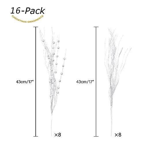 30 Days Return Policy Fast Delivery Trusted seller SLK 16-Pack Artificial Glitter Berry Stem Ornaments, Christmas Decorative Glittery Twigs, Picks, Branches for Tree, Wreath, Small Vase, Halloween Party (Silver) Product Description 1.Christmas Glitter Twigs are perfect choice for Christmas tree decoration, DIY garland and wreath, by adding our glittery picks ornaments for your Christmas decorations. 2.Set of 16-Pack with 17 inches in length, making it easy to inserting into your Christmas tree and also provides sufficient ornaments to decorate your home. 3.Christmas Glitter Picks for tree are featured with beaded branches and curly branches which make you build your Christmas collection quickly with Infinite Imagination. 4.Many Usage Scenarios can be meet with our glittery stem berries. These branches can not only for vase decoration, but also for Christmas, Wedding, Party, Anniversary, Festivals and Special Days. 5.Tip: The flash may fall during transportation. This is inevitable. Current technology cannot solve it. If you mind shopping carefully, if t are packages with incomplete accessories, please contact us. Artificial Glitter Berry Stem Ornaments, Decorative Bead Sticks, Glittery Twigs, Picks, Branches for Christmas Tree, Small Vase, Holiday Shipping Returns Payment Shipping Shipping is FREE to all addresses other than APO/PO boxes in the lower 48 states. All our stock ships from US-based warehouses. Shipped via USPS or UPS (depending on location and package weight) Unless stated otherwise, all orders will ship within 24-72 hours of your payment being processed. Check our feedback to see the great reviews of FAST shipping we offer. Returns As our valued customer, we will do our best to make sure the product you receive arrives to you on time and as expected. If you are not satisfied with your purchase, please contact us within 30 days of receiving your order to process a return. Payment We currently accept payment via eBay managed payments only. Once payment is cleared, we will dispatch your shipment within 1-3 business days. Please refer to the "Shipping" tab for more information regarding shipping speed to your destination.