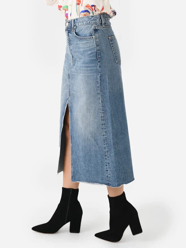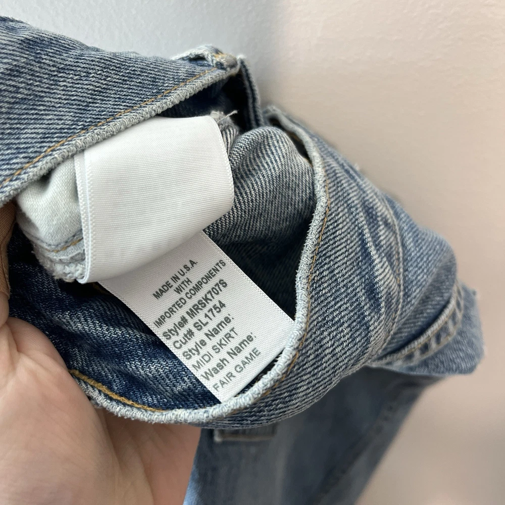 SLVRLAKE Women's Denim Midi Skirt Center Slit in Fair Game Blue Size 26 Excellent condition 14536