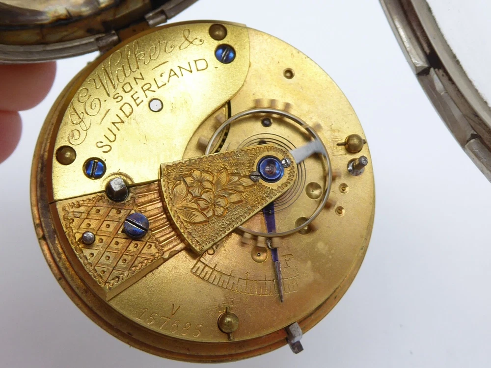 Offered for auction is a smart antique Victorian solid sterling silver pocket watch. The watch is running well but not tested for timekeeping. The case is hallmarked for Birmingham 1891 by Robert Bragg (English Watch Company) The movement engraved J E Walker & Son Sunderland. The watch measures approx. 54 mm wide. There is a chip to the dial between the 12 and 1 o'clock position please see the images Thanks for looking, please check out my other items and add me to your favourite sellers for similar items listed every week Please note all items are listed for auction without reserve and with no buy it now prices