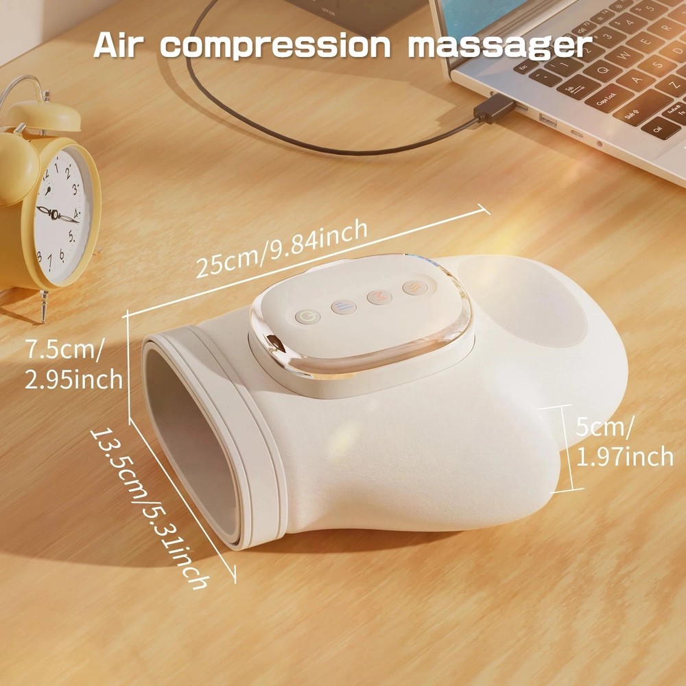 About this item Multiple Massage Modes : This hand massager with heat and compression offers 3 unique modes (Wellness, Comfort, Vitality) and 5 intensity levels, allowing you to customize the massage to your specific needs. The adjustable temperature settings (113°F, 122°F, 131°F, 140°F) combined with sequential compression and heat function simulate kneading and rolling actions to ease tension in fingers, palms, and wrists.ensuring all-day comfort and relaxation Ergonomic Design for Full Comfort : The hand massager is specifically designed to relieve finger, palm, and wrist fatigue. It features a five finger separation design that can completely wrap around the fingers and palm, providing a more suitable massage experience for both hands through 3D wave pressing. The massager is made of ABS fireproof material and TPU airbags,which are safe and durable. The ergonomic TPU airbag is made of high-quality PU leather and PE metal frame. Rechargeable and Portable : Say goodbye to frequent charging,our hand massager equipped with a 2000 mAh battery, Type-C quick charge interface, It only needs to be charged once a week, Perfect for consistent daily use at home, in the office, or while traveling. 2025 Best Gift Choice : Looking for some unique and practical gifts? The sleek, modern design with shiatsu technology makes this massager a perfect addition to any home or office. Birthday Gifts for Women, Thoughtful gifts for parents, spouses, or anyone suffering from hand fatigue or stiffness. Customer service : The hand massager with heat and compression is designed to fit both left and right hands, making it a great gift for your loved, If you have any questions during use, please contact our customer service, we will give you help and service Specifications: Name: Hot Compress Hand Massager Material: ABS+PU Color: Grey Size: 25×18.5cm/9.84×7.28inch Massager Mode: Hot Compress, Air Pressure Stage: 5 Levels Force Temperature: 45℃-50℃-55℃-60℃ Power: 10W Battery Capacity: 2000mAh Charging Time: 1.5hrs Working Time: 100~120mins Charging Port: USB-C Package Includeds: 1×Hand Massager 1×USB Cable 1×User Manual Note: 1. Please allow 0~1 inch error due to manual measurement. Thanks for your understanding. 2. Monitors are not calibrated same, item color displayed in photos may be showing slightly different from the real object. Please take the real one as standard.
