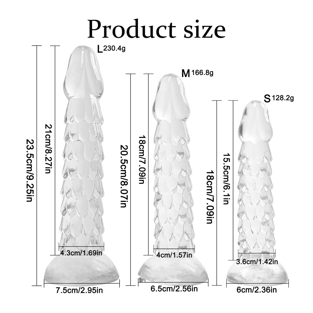 Product Details: Material:TPE Dragon Scale Tentacle Size : S:17.5X3.5cm/6.89x1.38 in M:20X3.5cm/7.87x1.38 in L:23X4cm/9.06x1.57 in Package includes: 1pc/3pcs of Dildos Parcel: Carton packaging, confidential delivery Features: Suitable for solid adsorption on any smooth surface, flat non porous surface. Soft like skin, Silky touch, smooth in and out. Full of softness, it is specially designedf ro the depth of the backyard, and the delicate fit is gradually deepened. ( Note: The size of goods due to the measurement method, measuring instruments, and so there will be a little different error, generally ± 2 mm error is normal, not a quality problem or size does not match the description, thank you)