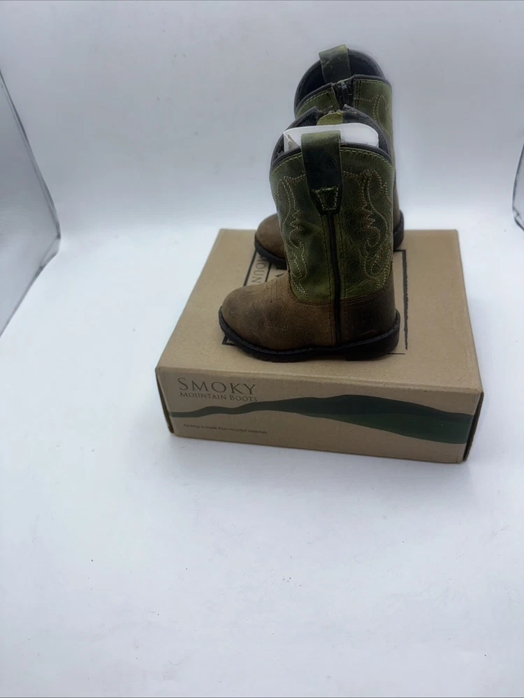 The Smoky Mountain Boots Kids' Unisex Toddler Hopalong Western Boots in size 4 are stylish and versatile for young children. Made with a leather upper, these pull-on boots feature a u-toe shape and Western accents. The brown distress color and embroidery details add a touch of flair, making them perfect for casual occasions. With a comfortable fit and unisex design, these boots are a great choice for young adventurers looking to add a touch of Western flair to their wardrobe.