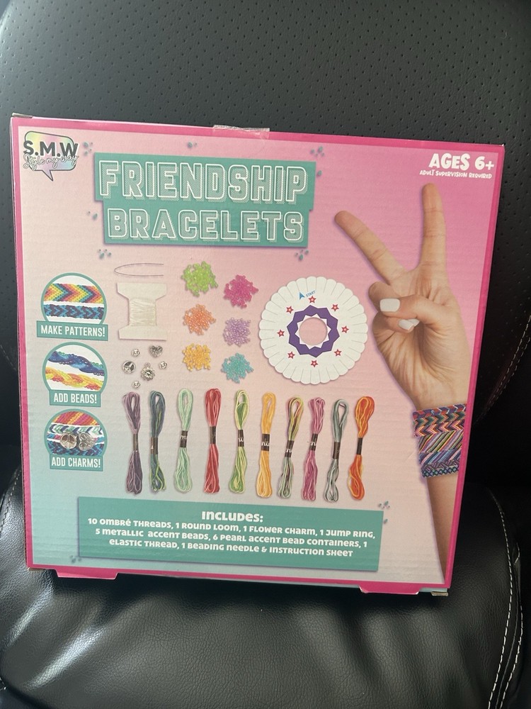 The S.M.W. Style My Way Friendship Bracelets with Weaving Loom is a set that allows users to create their own personalized friendship bracelets. The brand, Style My Way, specializes in crafting unique and stylish accessories. This product is perfect for those who enjoy making handmade jewelry and want to create meaningful gifts for friends. The included weaving loom makes the process easy and efficient, allowing users to quickly create beautiful bracelets with ease. For ages 6+ New in box!