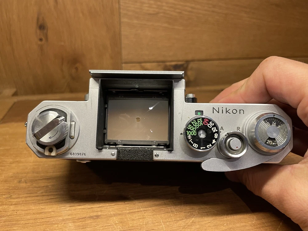 *S/N 6839876 : Near Mint* Nikon F SLR 35mm Film Camera Body Only From Japan #R4-45B 6839876 Description ■ Total Excellent +++++ Pre-owned, almost no signs of use ■ Appearance Appearance is beautiful, tiny scuffs from normal use. It shows signs of use. *Please check photos. ■ Optics ( Mirror ) Beautiful condition. There is no fog. There is no fungus. There is no scratches. There is no separation. There is crack on the edge of mirror However, it is firmly bonded, there is no wobbling, and it does not interfere with visibility. There is no separation. ■ Functional It works properly. With this model, the shutter curtain often does not open fully when the shutter speed is high. However, this item has been overhauled and everything works properly at each shutter speed. ■ Bundled Items Body Cap , The Focusing Screen A All you can see on the picture will be included in a set of a package. Please refer to the pictures for more details. Please check the pictures and don't hesitate to ask any questions about the item ! Thank you. Payment We accept PayPal, Visa, Master Card, American Express and Discover . Payment is due within 5 days of the auction end. We will ship the item 4 business days after your payment clears. Shipping I send a product by or Japan Post EMS . I attach the tracking number. Shipping is only available to the address registered in Paypal. Please note that any address not registered in Paypal is not acceptable to ship. Shipping is available from Monday to Friday. Weekends are not available because office is closed. Returns Unconditional Return Policy Customer service and satisfaction are very important to us. I have an unconditional return policy if notified within 30 of the receipt of the item. If something is wrong or have any questions , Please let me know to below email address before feedback and return request on eBay. Before that , there may be anything I can do. All returned items must be the original condition. All return requests must be made within 30 days of the receipt of the item. Please contact me first for return before you ship it back to me. The postage of the returned goods is a buyer burden. International Buyers Please Note: Import duties, taxes, and charges are not included in the item price or shipping cost. These charges are the buyer's responsibility. Please check with your country's customs office to determine what these additional costs will be prior to bidding or buying.