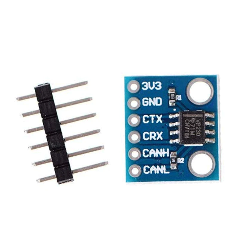 SN65HVD230 CAN Bus Transceiver Communication Thermal Protection Slope Control Module for Arduino Controller Board SN65HVD230 CAN Bus Transceiver Communication Module Thermal Protection Slope Control for Arduino Product Description SN65HVD230 can be used under high interference environment. The device has the ability to send and receive good at different rates, and its main features are as follows: Fully compatible with ISO11898 standard; High input impedance, allowing 120 nodes; Low current standby mode, the typical current of 370μA; Signal transfer rate up to 1Mb / s; Thermal protection, open circuit failure protection function; With anti-instantaneous interference protection bus; Slope control, reduce radio frequency interference (RFI); Differential receiver with a wide range of anti-common-mode interference, electromagnetic interference (EMI) capabilities. Operating modes and control logic SN65HVD230 high speed, slope and wait three different modes of operation. Its working mode control can be achieved by the control pin Rs. Figure 2 is a SN65HVD230 CAN bus system in a typical application diagram. Can be seen from the figure, CAN controller is connected to the output pin Tx SN65HVD230 data input terminal D, this data can be transferred to the CAN node sends CAN network; CAN controller and receive pins of Rx and SN65HVD230 R is connected to the data output terminal, for receiving data. Select the port Rs SN65HVD230 way via jumpers and end of the ground slope resistor can be achieved through hardware mode select three modes of operation, in which the slope is 0 ~ 100kΩ resistor potentiometer Package Included: 1 x SN65HVD230 CAN bus transceiver communication module For for arduino