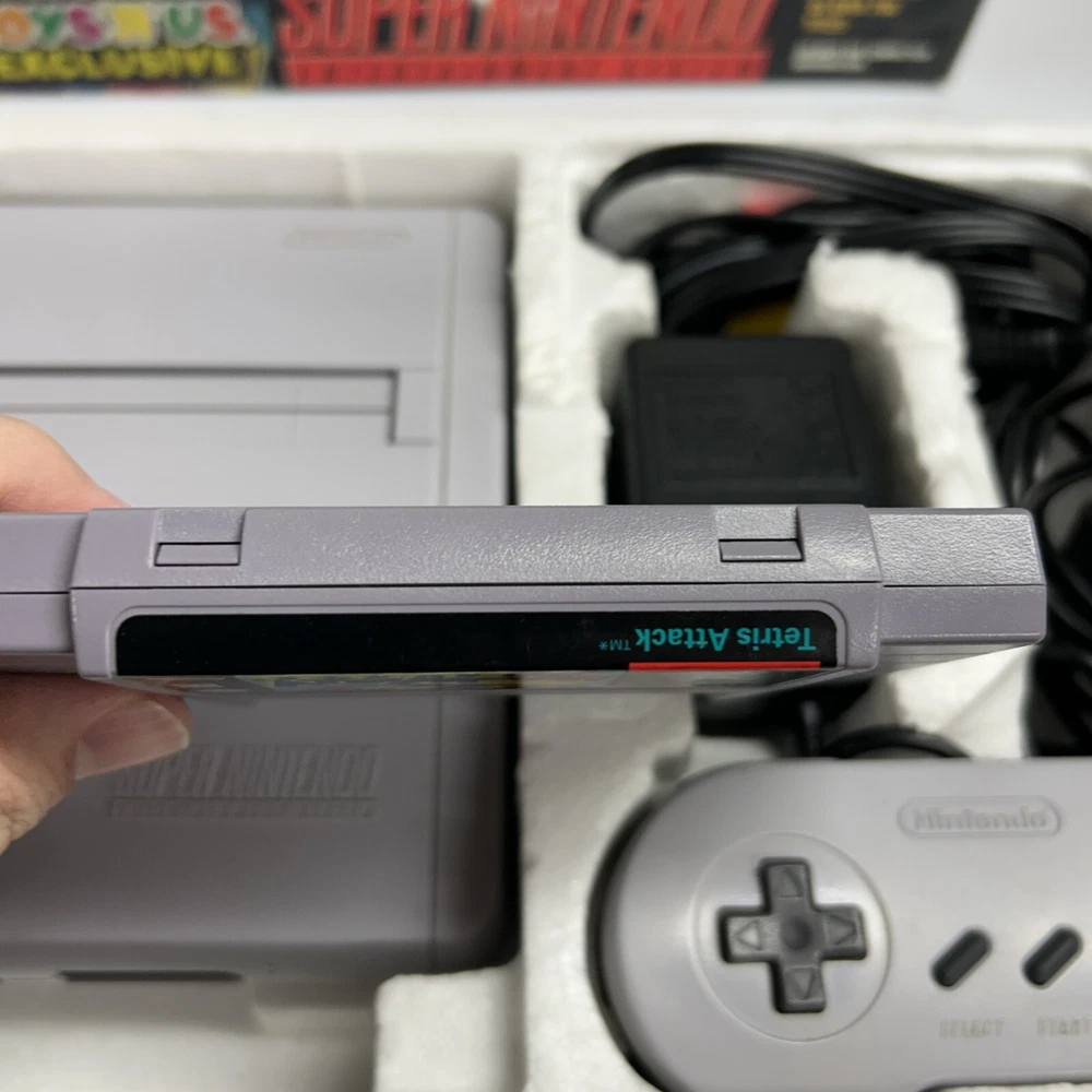 SNES Jr Console Tetris Attack Toys R' US exclusive In Box working rare!. Condition is Used. Shipped with USPS Priority Mail.