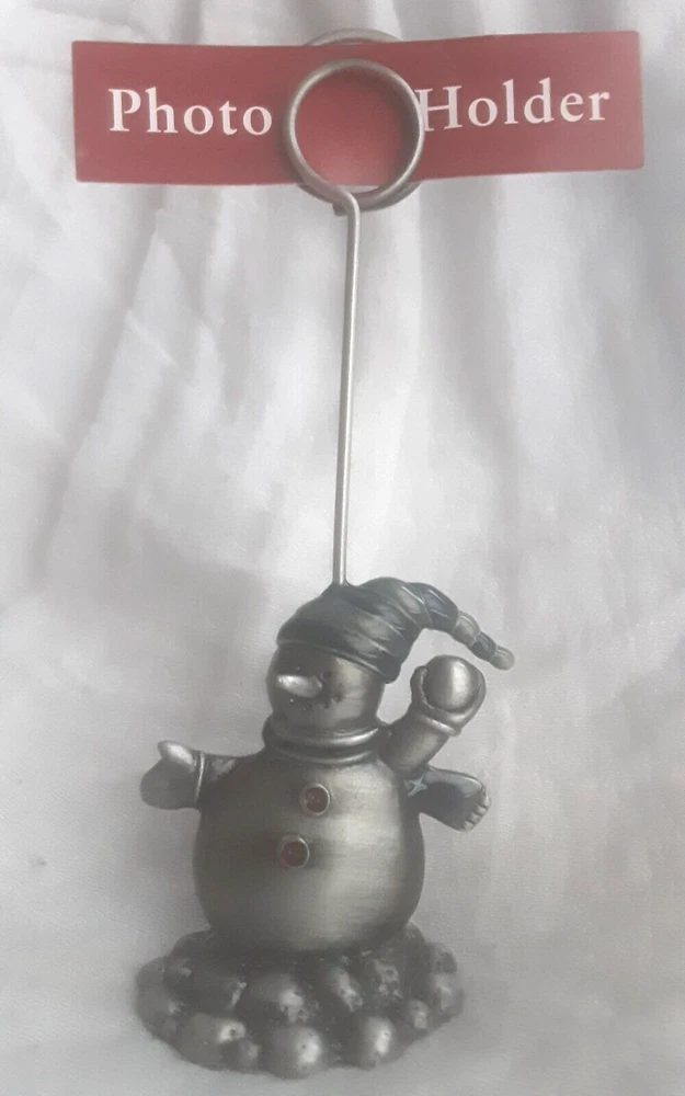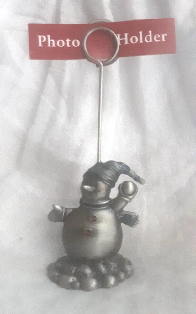 SNOWMAN DESKTOP PHOTO PICTURE BUSINESS CARD HOLDER CHRISTMAS SNOWBALL THROWING