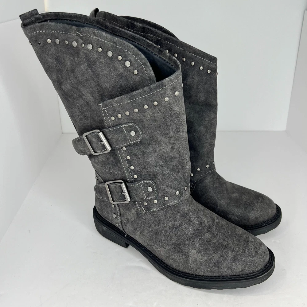 Elevate your style with these chic SO Women's Boots in a beautiful gray color. These boots are perfect for any season and feature a slip-on closure with leather straps for ease of wear. The boots have a low block heel, making them comfortable for all-day wear. The boots are crafted from high-quality synthetic material. They come in a mid-size 7.5 and have a round toe shape. The outsole is also made of rubber, making it slip-resistant and durable. These boots are accented with studs, giving them a touch of edginess. They are perfect for any casual or formal occasion. 100% CUSTOMER SATISFACTION IS OUR GOAL! Our items are always carefully examined for condition, measured if necessary, and photographed in a climate controlled and smoke-free environment. We make every attempt to accurately describe and clearly picture the items we have for sale. Please, ALWAYS view all of the photos. We value your business and our goal is your complete satisfaction. FAST SHIPPING All items are packaged with care and shipped out the same or next business day via USPS, FEDEX, or UPS with tracking numbers so you are always informed. RETURNS We offer a 30-day return policy. All items must be unused and unopened in the condition in which they were received, with original packaging, and all accessories included for return. REVIEWS - CUSTOMER SATISFACTION - COMMUNICATION We aim to make you happy. After you receive your shipment, please leave a positive review . If you have concerns or questions about your order, please contact us so we can resolve the issue. We will do our best to make you satisfied. THANK YOU FOR YOUR BUSINESS!