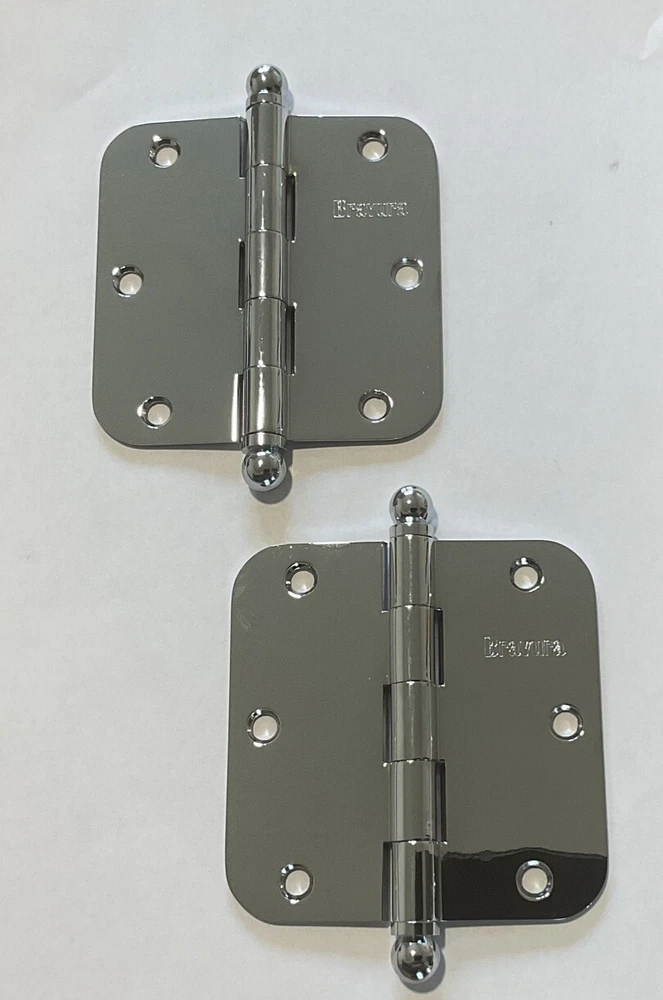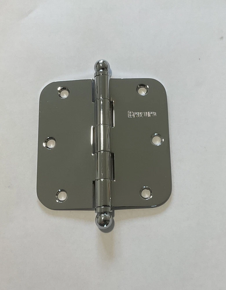SOLID BRASS Bravura 3.5” X 3.5" x 5/8 Rad Door Hinge Shiny Chrome- No Rust