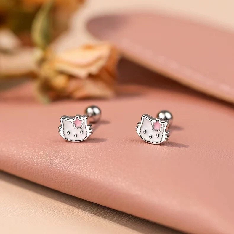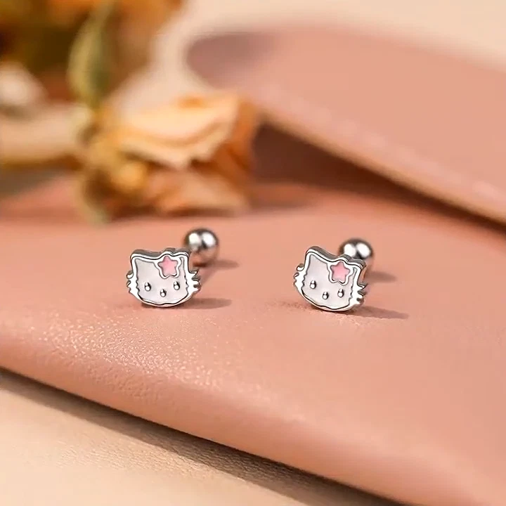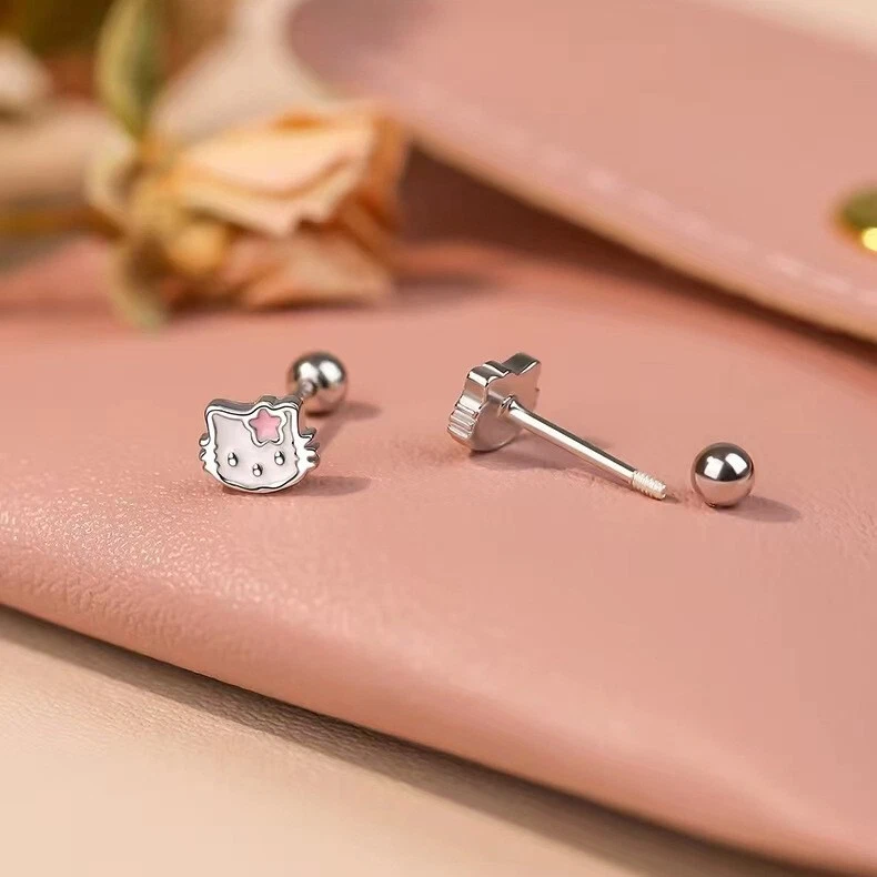 S999 Sterling silver small Cat earrings This earring is Great GIFT for friend! ♥Metal Type: S999 Sterling Silver ♥ Size : Length: 6x5mm Free Gift Box