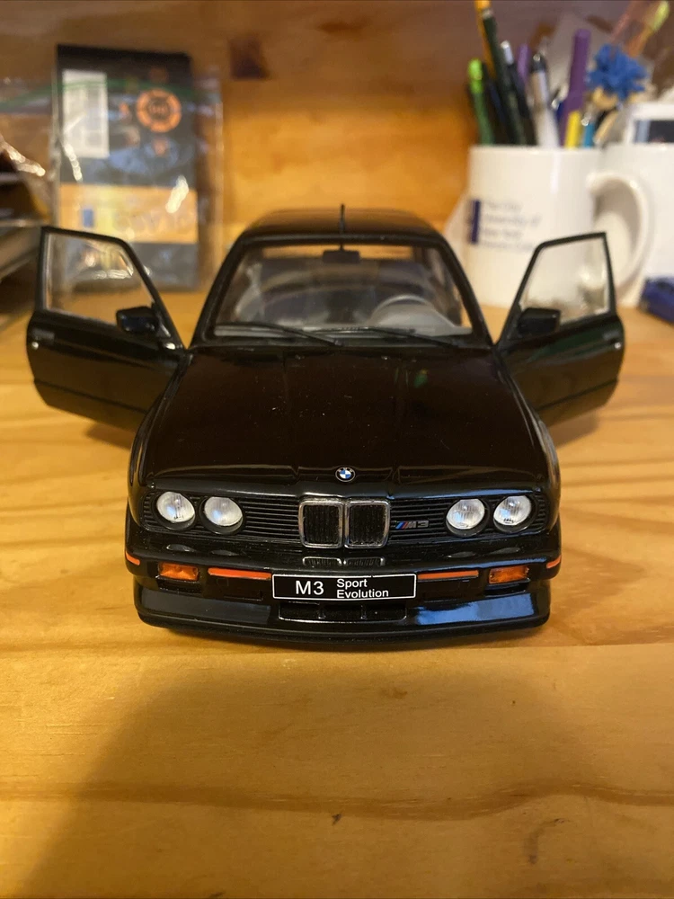 Experience the thrill of the iconic 1990 BMW M3 E30 Sport Evo, now available in a highly detailed 1:18 scale diecast model by Solido. With its sleek black finish, this collector's piece captures the essence of the vehicle that set a new standard for performance and style, featuring precise craftsmanship that showcases the unique lines and aerodynamic silhouette of the original car. The SOLIDO 1990 BMW M3 E30 Sport Evo model car is a must-have for enthusiasts and collectors alike, offering an authentic representation of the classic vehicle. This is an excellent addition to any collection or as a stand-alone display piece that will impress anyone with a passion for BMW's storied history in motorsports. No original box unfortunately will be bubble wrapped safe and securely and appropriate size box for shipping. If you have any questions comments or concerns, please feel free to send a message .