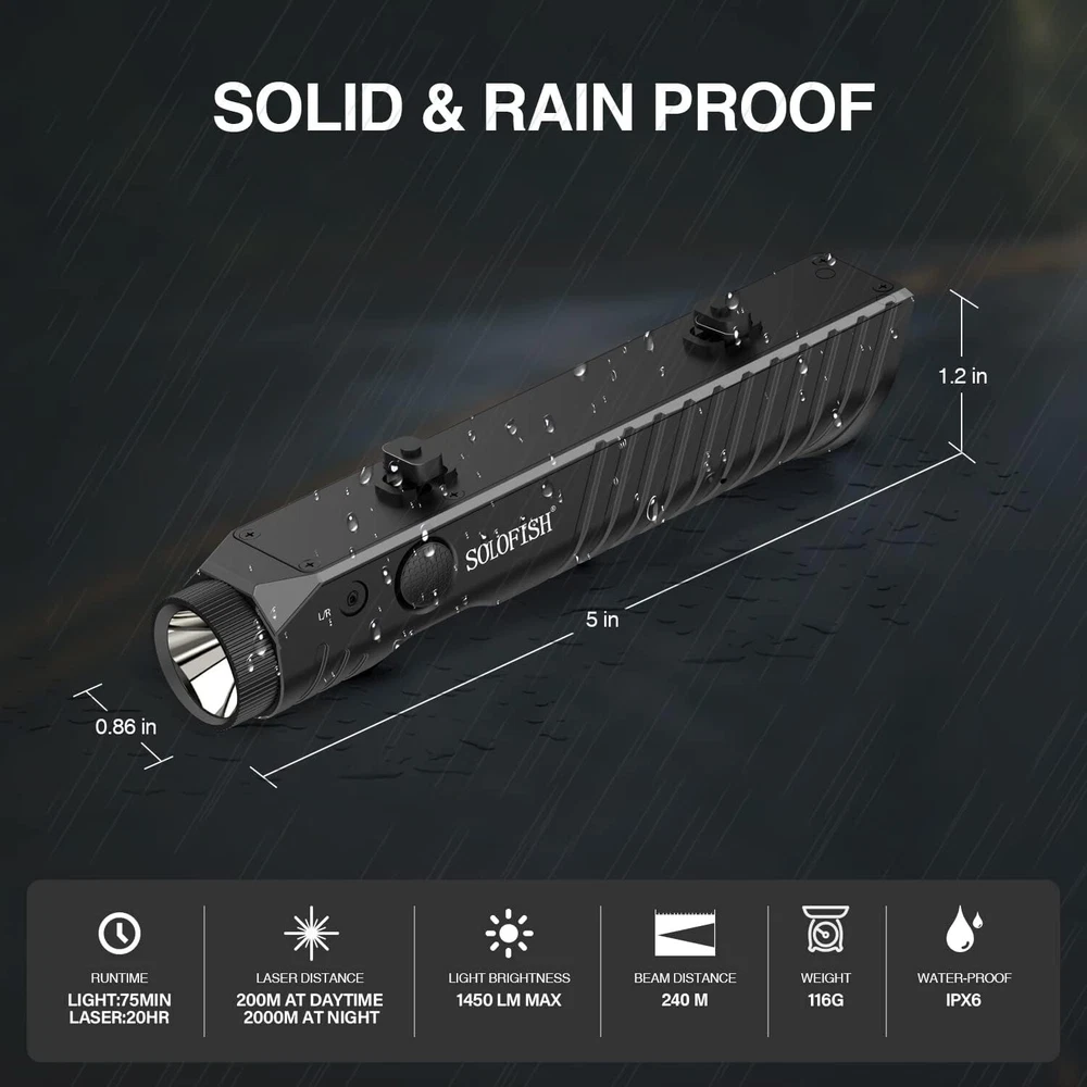 Product Description Key Features ✅ Bright Tactical Light with 1450 lumens and 240 meters tactical flashlight beam distance ✅ The bright & adjustable green laser output is <5mW, the class is IIIA. The laser beam distance is about 200 meters/ day; 2000 meters/ night. ✅ Anti-slip cover design with ultra low profile features won't block your scopes ✅ Three optional modes: rifle laser only, rifle flashlight only, laser & Flashlight. Strobe and steady modes are offered for both tactical light and laser. Double press to chose the Strobe modes. ✅ Built-in 1000mAh Battery is easy to charge with the included magnetic charging cable. It supports 20hrs running time for green laser only, 75 minutes for flashlight only, 60 minutes for flashlight & laser SHIPPING 1. Please make sure the delivery address is correct before payment. 2. Products will be shipped out within 1 working days after payment confirmation. 3. We are not responsible for any customs tax or import tax. 4. We are sincerely sorry if you do not receive your items in the limited time, please contact us first. We will handle it together with you to get your satisfaction again. RETURN 1. Returns are accepted. 30-day returns for full refund or exchange. 2. Shipping and handling charges are free. FEEDBACK 1. We highly respect customers' advice, praise and complaints, absorbing every useful information to get a better product supplying. 2. When you are satisfied with products and service, please leave positive feedback, we will slove it for you asap. 3. If you have any problem regarding your transaction, please contact us first. We will try our best to meet your satisfaction rather than getting a poor feedback from you.