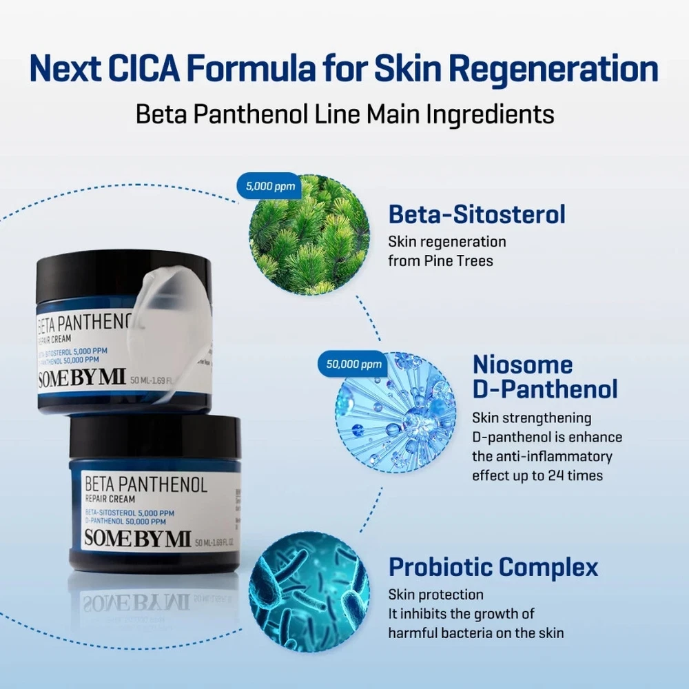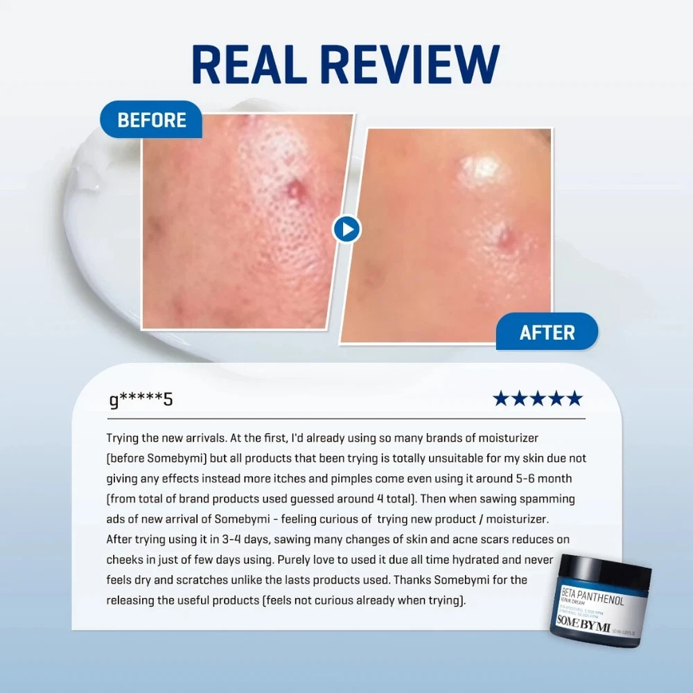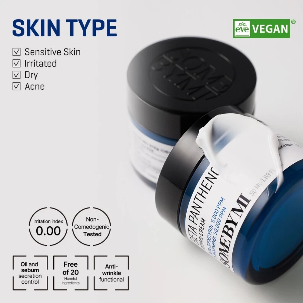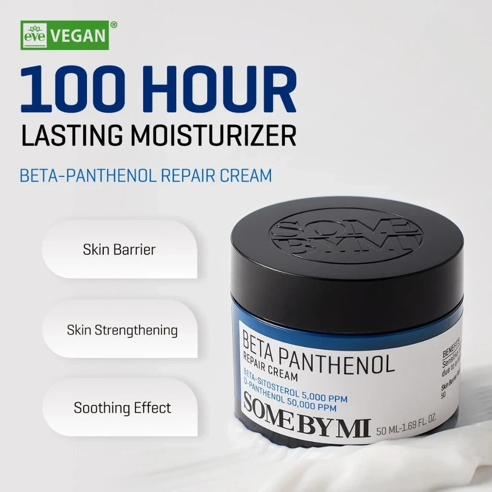 SOME BY MI BETA-PANTHENOL REPAIR CREAM 50 ml A moisturizer designed to address skin concerns like redness, extreme dryness, and acne. 🔵 Key Benefits 🔹 Ultra-Moisturizing Barrier Cream : Keeps skin hydrated for up to 100 hours. 🔹 Healthy Barrier Moisturizer : Strengthens and supports the skin barrier. 🔹 Beta-Sitosterol 5,000 ppm & D-Panthenol 5% (Croderm-P 2%) : Provides all-day hydration. 🔹 Peptide Complex : Helps repair damaged skin for a healthier appearance. 🔵 Key Ingredients 🔹 Beta-Sitosterol 5,000 ppm & D-Panthenol 5% (Croderm-P 2%) : Deeply moisturizes and soothes the skin. 🔹 Peptide Complex : Promotes skin repair and recovery. 🔹 Carthamus Tinctorius (Safflower) Seed Oil (Omega) : Forms a protective moisture barrier. 🔵 How to Use After applying serum, take an appropriate amount of the cream. Spread evenly on the skin and gently pat to enhance absorption. ☑️ Content : 50 ml ☑️ BPOM Registration Number : NA26230100447 ALL THE PRODUCTS ARE BRAND NEW AND AUTHENTIC! Disclaimer In case of having side effects such as red rash, swollenness and/or itching while using this skincare or cosmetic, or in case such symptomps appear by direct sunlight after using it, consult a dermatologist immediately. Precaution for treatment and storage. Keep out of reach from children. Avoid the place where the direct sunlight Product Condition We always distribute health and beauty products in its original manufacturer packaging the size writing on each of the packaging labels based on the net measurement. Sometimes you may find the container does not have the full capacity, but that doesn't determine that we are cheating or reducing the content. Some of the products may come with a sealed package; some may not, and we do not accept complaints about non sealed containers since they are beyond our capacity. Shipping We ship from Indonesia using economy international shipping We will process your order within 1 to 3 business days . Estimate arrival date is between 12 to 30 business days depend on your location Please note that delivery dates aren't guaranteed and may include extra transit time because of unforeseen delays. Late deliveries are always a possibility; however, we will try our best to ensure all deliveries arrive on time For holiday seasons, shipping will take longer time to reach. Please be patient when awaiting your item. Please make sure your shipping address is correct before you place an order. Your address must include a contact phone number. This is very important since shipping company require it. Our prices not include local taxes and tariffs which may apply in your region. Customers outside of Indonesia may be subject to customs fees and/or import duties and taxes, which are levied once a shipment reaches your country. Additional charges for customs clearance must be borne by you; we have no control over these charges and cannot predict what they may be. Customs policies vary widely from country to country. You should contact your local customs office or tax authority for information specific for your situation. Return: If you having any problem with the product, please chat us first within 30 days before requesting a refund. We will assist you If item has already shipped and you decide you do not want it or you want to ask for item's replacement, please return the item within 30 days and make sure it's in a good condition. Return shipping is the buyer's responsibility unless the return is a result of our mistake or otherwise stated. And if you decide to ask for money back (after receive the item), refund will be given m inus Shipping Cost. Feedback If you are satisfied with our service, please give us a 5-stars positive. If there is any problem, PLEASE contact us before leave any negative feedback. Your satisfaction is our priority. Thank you for visiting us and for your purchase. Please contact us with any questions you may have.