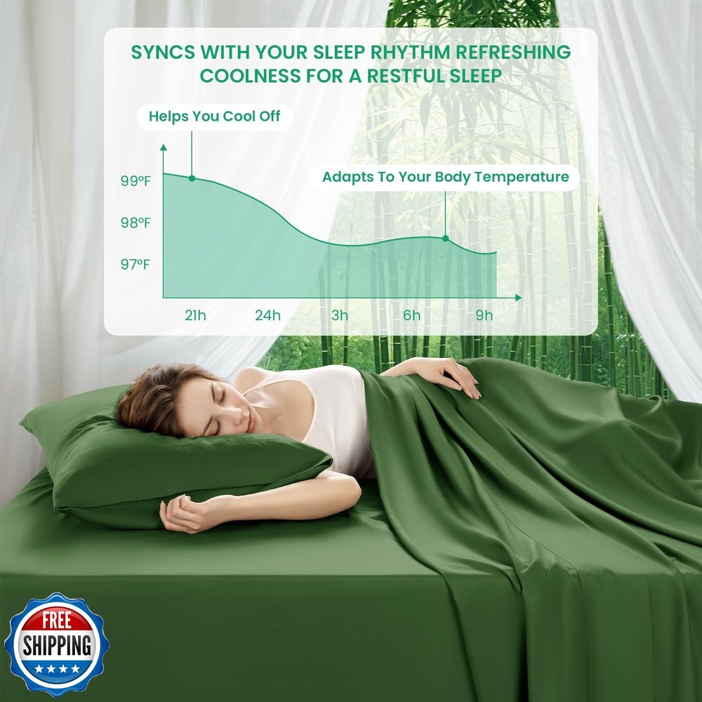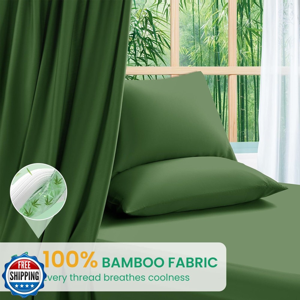 SONORO KATE 100% Viscose Derived from Bamboo_Sheets King Size, Ultra Breathable and Cooling Bed Sheets for Hot Sleepers, Hotel Luxury Silky Bedding Sheets, 16" Deep Pocket - 4PC (Olive,King) Features UNMATCHED COMFORT & SOFTNESS: Crafted from 100% bamboo_derived rayon, our bed sheets deliver unparalleled softness with a silky-smooth, milk-like texture. OEKO-TEX certified and stronger than cotton, these sheets offer cloud-like comfort for a rejuvenating sleep. The sateen weave ensures a luxurious hotel-grade finish that resists pilling and fading. COOLING & THERMOREGULATING PERFORMANCE: Stay 3–4° cooler than cotton with moisture-wicking bamboo_fabric designed for hot sleepers. Naturally breathable and thermoregulating, these sheets keep you dry in summer and cozy in winter, ensuring a comfortable night’s sleep in every season. DEEP POCKET & SECURE FIT: The fitted sheet features a 16" deep pocket, while the elastic band around the edge guarantees a secure fit that won’t shift during sleep. The set includes 1 flat sheet (105"x102"), 1 fitted sheet (78"x80"), and 2 pillowcases (20"x40"), all tailored for a polished, wrinkle-free look on any bed. EASY CARE & LONG-LASTING DURABILITY: Machine wash in cold water, tumble dry on low, and say goodbye to ironing! Our sheets set is made from 100% viscose derived from bamboo_, ensure years of silky softness. Pet-friendly and stain-resistant, these sheets withstand daily wear while remaining vibrant and fresh. AFFORDABLE LUXURY & DURABILITY: Made from high-grade bamboo_derived viscose, these sheets boast a smooth, wrinkle-free surface and exceptional softness. Enjoy long-lasting quality and luxury without compromising durability. This set makes a thoughtful gift for Christmas, Thanksgiving, Teacher's Day, birthdays, or other special occasions—guaranteed to bring both joy and practicality to your loved ones. Shipping Free & Fast Shipping: We offer free shipping to most of the USA with a normal delivery time of 3-7 days. However, due to the current situation, additional delivery time (up to 3 weeks) may be required for some items. Alternative Carriers: We may use alternative carriers (e.g., USPS, FedEx, UPS) to ensure your package arrives safely and on time. Due to the use of multiple carriers, we are unable to provide a tracking number automatically. Handling Time: Orders are processed and shipped within 1-2 business days of receiving cleared payment. Shipping Restrictions: Shipping to Alaska, Hawaii, Puerto Rico, Guam, and other US territories may incur shipping charges or delivery restrictions. Please contact us before ordering, or your order can be refunded/cancelled. State Restrictions: Certain items may not be shipped to California due to state regulations. Contact for Tracking Updates: If you require tracking updates or have any concerns about the delivery of your order, please feel free to contact us, and we will be happy to assist you. Return Policy 30-Day Hassle-Free Returns: If you are not completely satisfied with your purchase, you can return the item for free within 30 days of receiving it for a full refund or exchange. Easy Return Process: Contact us, and we will provide you with a prepaid return shipping label and detailed instructions. No Restocking Fee: There are no restocking fees for returns. However, the buyer is responsible for return shipping costs if the return is not due to a seller"s error. Refund Processing: Refunds will be processed within 1 business day of receiving the returned item in its original condition. Feedback Your feedback is extremely important to us. We strive to provide the best products and customer service possible. If you are satisfied with your purchase, please take a moment to leave us a positive review. If you have any concerns or issues with your order, please contact us before leaving negative feedback. We are committed to resolving any problems and ensuring your satisfaction. Contact Us If you have any questions or concerns, please feel free to reach out to our customer support team. You can contact us through the eBay messaging system. We are available Monday to Friday, 9:00 am to 5:00 pm EST, and we will do our best to respond to your inquiry within 24 hours. Thank you for supporting our small family business!