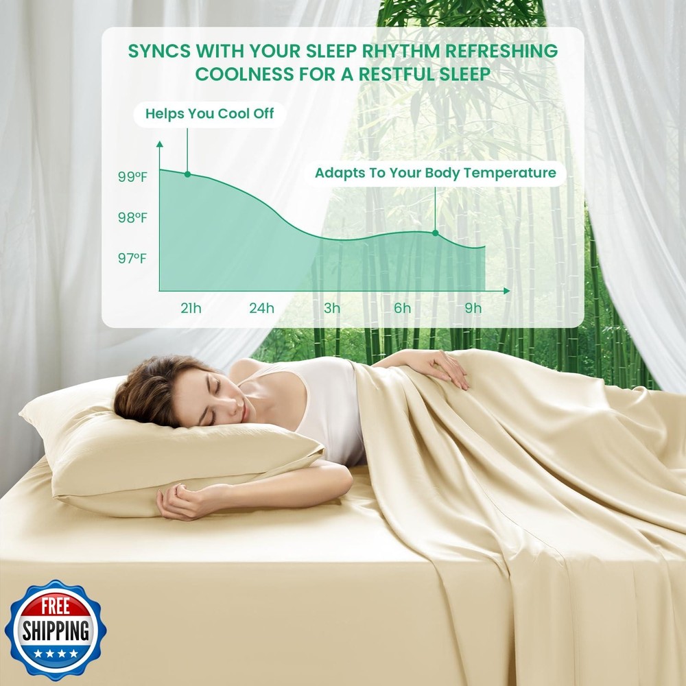 SONORO KATE 100% Viscose Derived from Bamboo_Sheets King Size, Ultra Breathable and Cooling Bed Sheets for Hot Sleepers, Hotel Luxury Silky Bedding Sheets, 16" Deep Pocket - 4PC (Beige,King) Features UNMATCHED COMFORT & SOFTNESS: Crafted from 100% bamboo_derived rayon, our bed sheets deliver unparalleled softness with a silky-smooth, milk-like texture. OEKO-TEX certified and stronger than cotton, these sheets offer cloud-like comfort for a rejuvenating sleep. The sateen weave ensures a luxurious hotel-grade finish that resists pilling and fading. COOLING & THERMOREGULATING PERFORMANCE: Stay 3–4° cooler than cotton with moisture-wicking bamboo_fabric designed for hot sleepers. Naturally breathable and thermoregulating, these sheets keep you dry in summer and cozy in winter, ensuring a comfortable night’s sleep in every season. DEEP POCKET & SECURE FIT: The fitted sheet features a 16" deep pocket, while the elastic band around the edge guarantees a secure fit that won’t shift during sleep. The set includes 1 flat sheet (105"x102"), 1 fitted sheet (78"x80"), and 2 pillowcases (20"x40"), all tailored for a polished, wrinkle-free look on any bed. EASY CARE & LONG-LASTING DURABILITY: Machine wash in cold water, tumble dry on low, and say goodbye to ironing! Our sheets set is made from 100% viscose derived from bamboo_, ensure years of silky softness. Pet-friendly and stain-resistant, these sheets withstand daily wear while remaining vibrant and fresh. AFFORDABLE LUXURY & DURABILITY: Made from high-grade bamboo_derived viscose, these sheets boast a smooth, wrinkle-free surface and exceptional softness. Enjoy long-lasting quality and luxury without compromising durability. This set makes a thoughtful gift for Christmas, Thanksgiving, Teacher's Day, birthdays, or other special occasions—guaranteed to bring both joy and practicality to your loved ones. Shipping Free & Fast Shipping: We offer free shipping to most of the USA with a normal delivery time of 3-7 days. However, due to the current situation, additional delivery time (up to 3 weeks) may be required for some items. Alternative Carriers: We may use alternative carriers (e.g., USPS, FedEx, UPS) to ensure your package arrives safely and on time. Due to the use of multiple carriers, we are unable to provide a tracking number automatically. Handling Time: Orders are processed and shipped within 1-2 business days of receiving cleared payment. Shipping Restrictions: Shipping to Alaska, Hawaii, Puerto Rico, Guam, and other US territories may incur shipping charges or delivery restrictions. Please contact us before ordering, or your order can be refunded/cancelled. State Restrictions: Certain items may not be shipped to California due to state regulations. Contact for Tracking Updates: If you require tracking updates or have any concerns about the delivery of your order, please feel free to contact us, and we will be happy to assist you. Return Policy 30-Day Hassle-Free Returns: If you are not completely satisfied with your purchase, you can return the item for free within 30 days of receiving it for a full refund or exchange. Easy Return Process: Contact us, and we will provide you with a prepaid return shipping label and detailed instructions. No Restocking Fee: There are no restocking fees for returns. However, the buyer is responsible for return shipping costs if the return is not due to a seller"s error. Refund Processing: Refunds will be processed within 1 business day of receiving the returned item in its original condition. Feedback Your feedback is extremely important to us. We strive to provide the best products and customer service possible. If you are satisfied with your purchase, please take a moment to leave us a positive review. If you have any concerns or issues with your order, please contact us before leaving negative feedback. We are committed to resolving any problems and ensuring your satisfaction. Contact Us If you have any questions or concerns, please feel free to reach out to our customer support team. You can contact us through the eBay messaging system. We are available Monday to Friday, 9:00 am to 5:00 pm EST, and we will do our best to respond to your inquiry within 24 hours. Thank you for supporting our small family business!