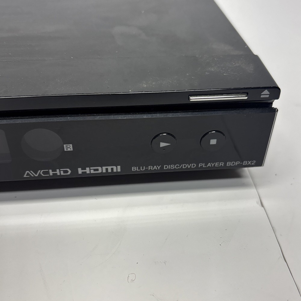 The SONY Blu-Ray Disc/DVD Player BDP-BX2 is a reliable and high-quality DVD player that can also play Blu-ray discs. With HDMI connectivity, this player is easy to set up and use with modern TVs. The sleek black design and Sony brand ensure both performance and style. Although it does not come with a remote, basic functions can still be easily accessed on the player itself. Perfect for enjoying your favorite movies and shows in high-definition quality.