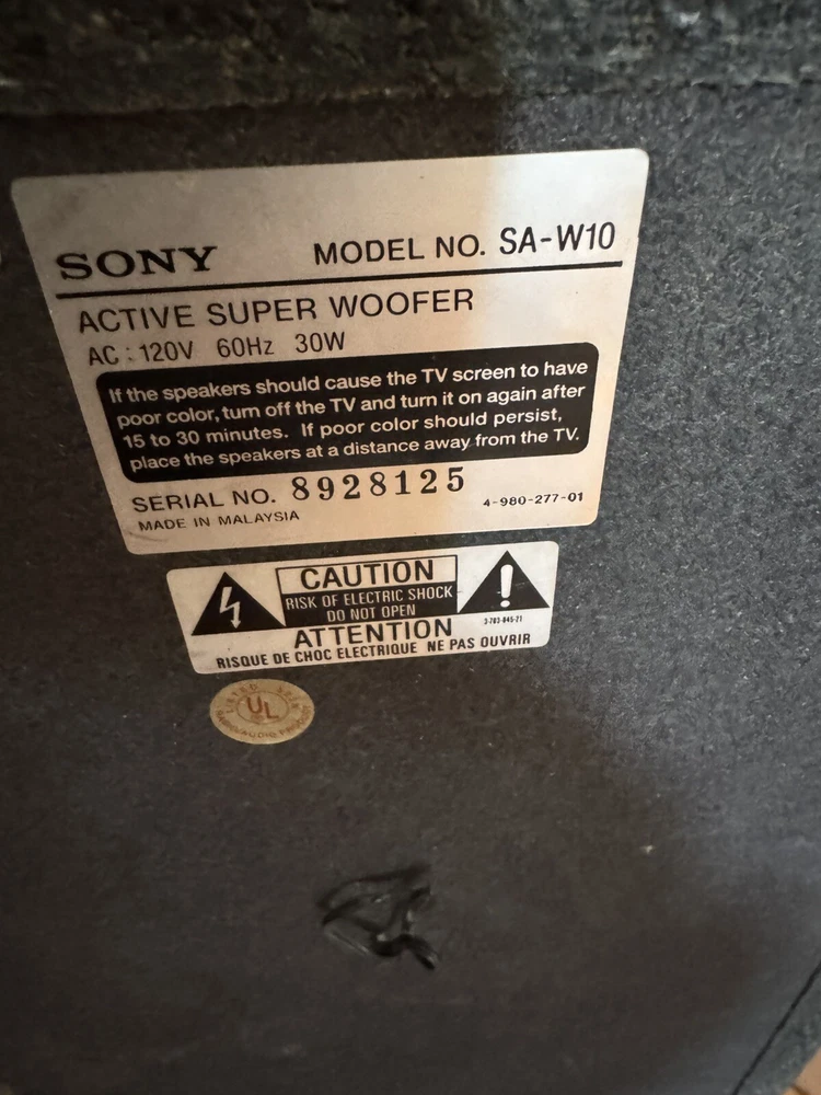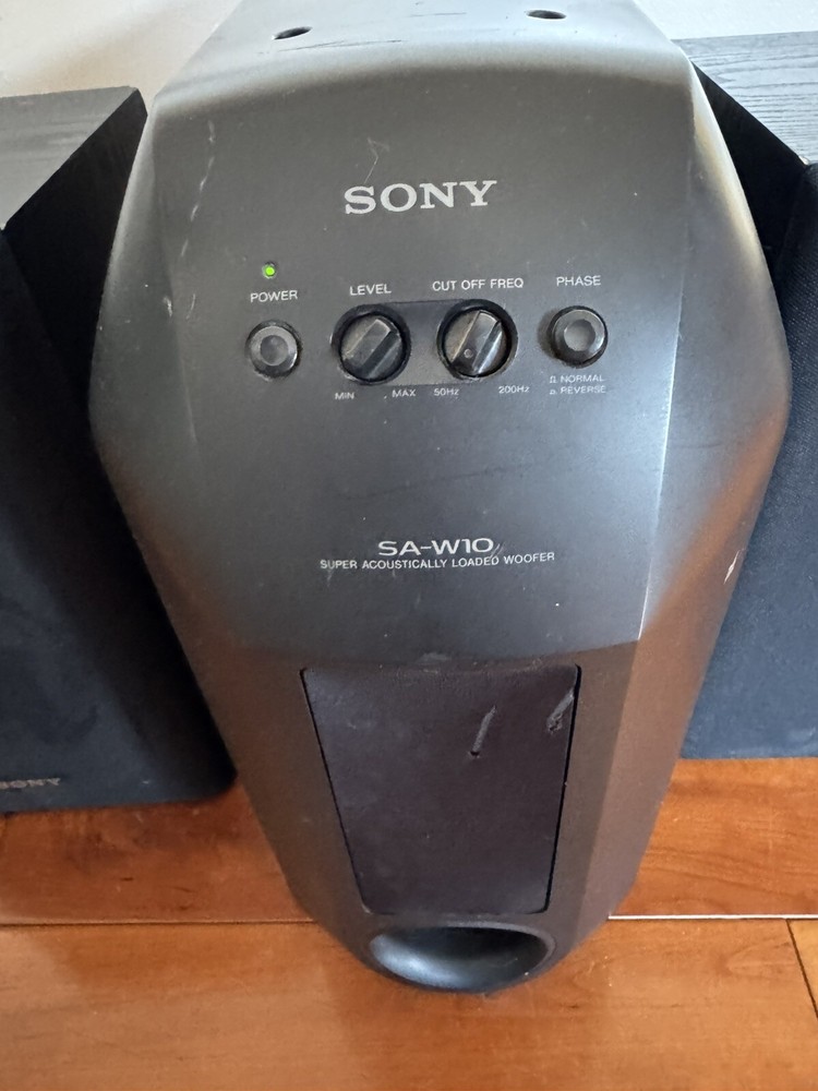 RMS Power: 10 W Color: Black Shape: Rectangular Connectivity: Wired Material: Plastic MPN: SA-W10 Model: SA-W10 Type: Subwoofer Brand: Sony