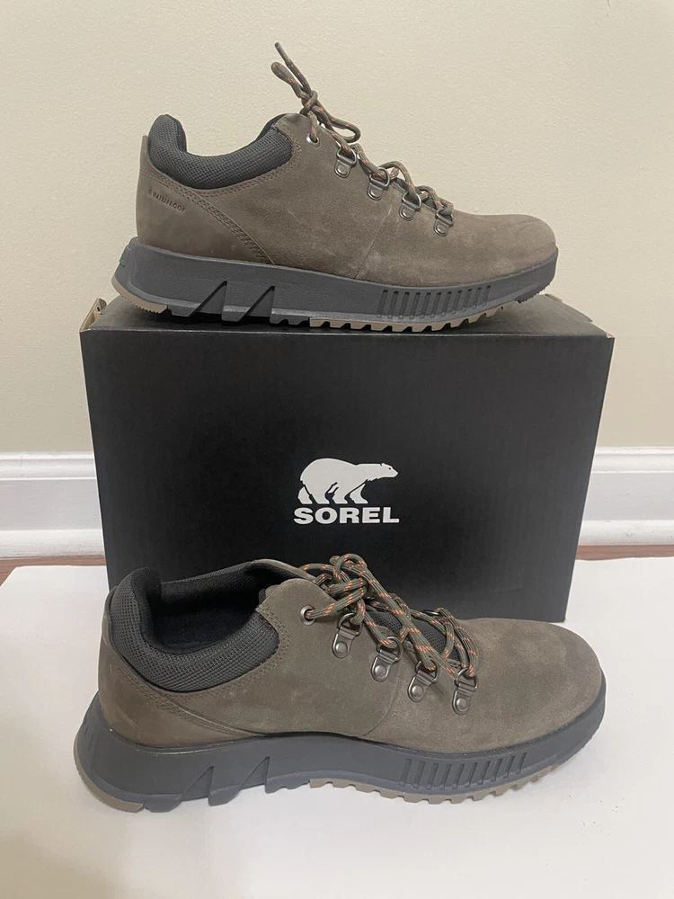 SOREL MAC HILL™ LITE HIKER LOW MEN'S WATERPROOF SNEAKER SIZE 9.5 LOW PROFILE WATERPROOF HIKING BOOTS The MAC HILL™ LITE HIKER LOW combines do-it-all hiking boot construction with modern styling. Features waterproof design for any condition. * UPPER: Available in suede and full grain waterproof leather. Metal hardware. Waterproof membrane construction. Laces are not waterproof. * FOOTBED: Removable molded EVA with textile topcover. * MIDSOLE: Lightweight molded LIVELYFOAM™. * OUTSOLE: EVERTREAD™ rubber pods with ground contact EVA. * LACE LENGTH: 43 in.