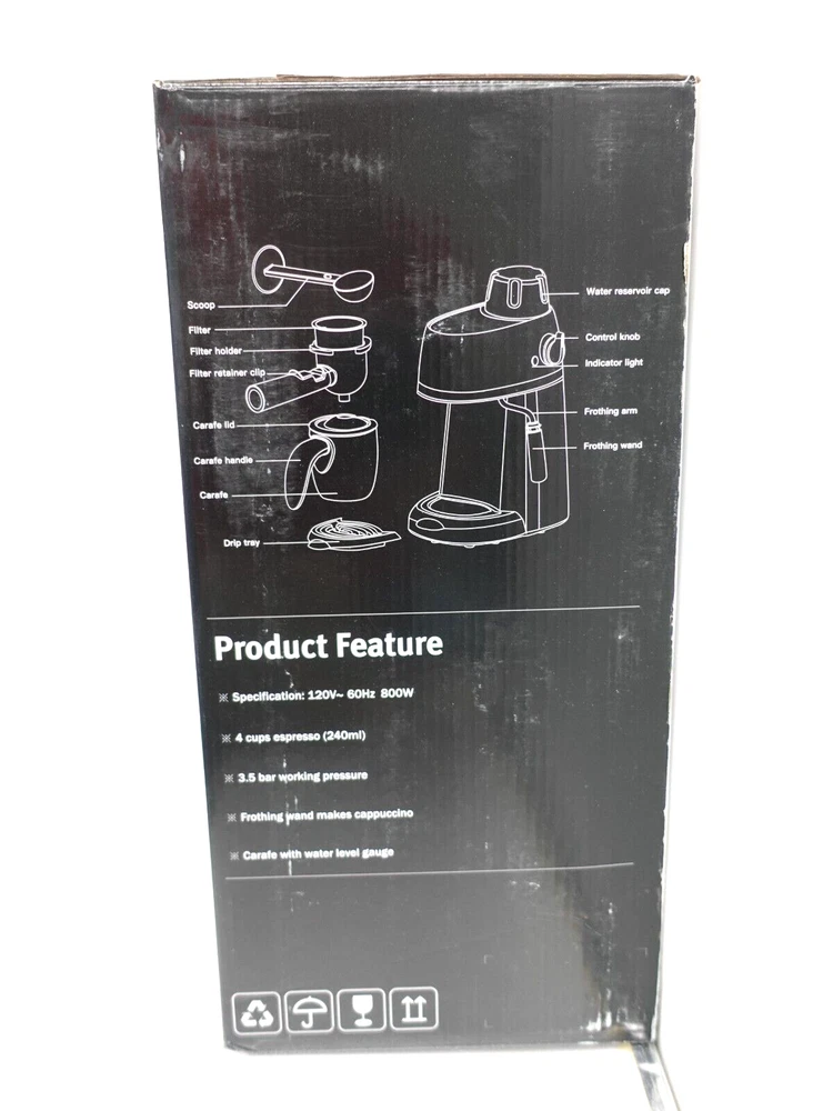 HomeSOWTECH CM5409-UL Espresso Coffee Maker Cappuccino Latte Machine Black 3.5 Bar