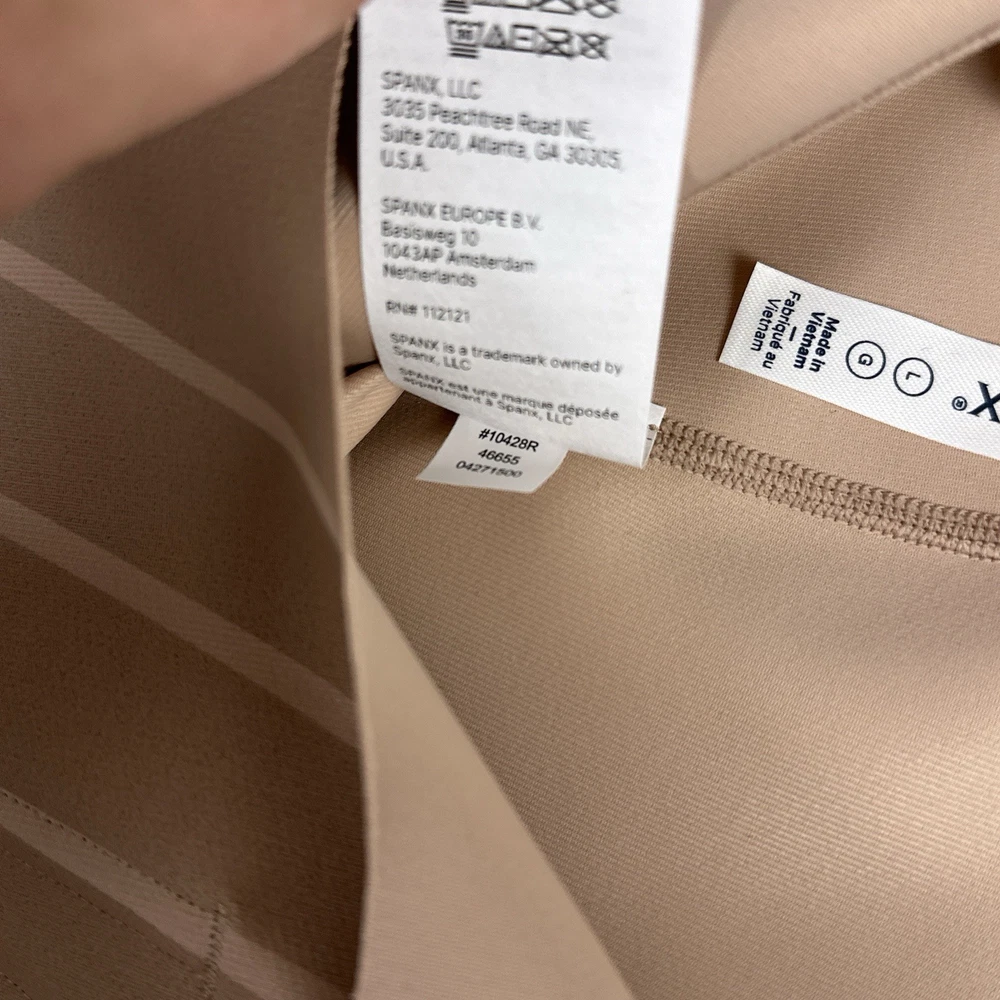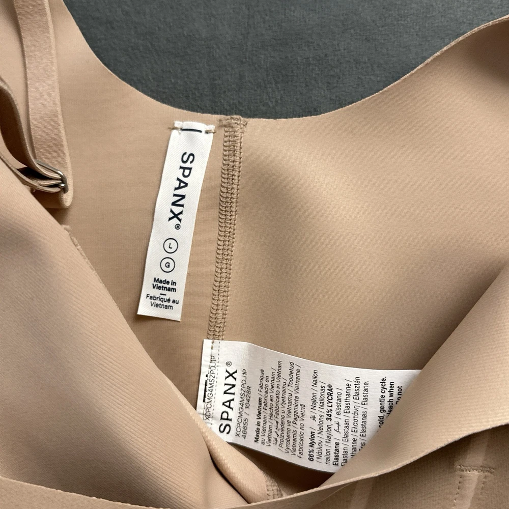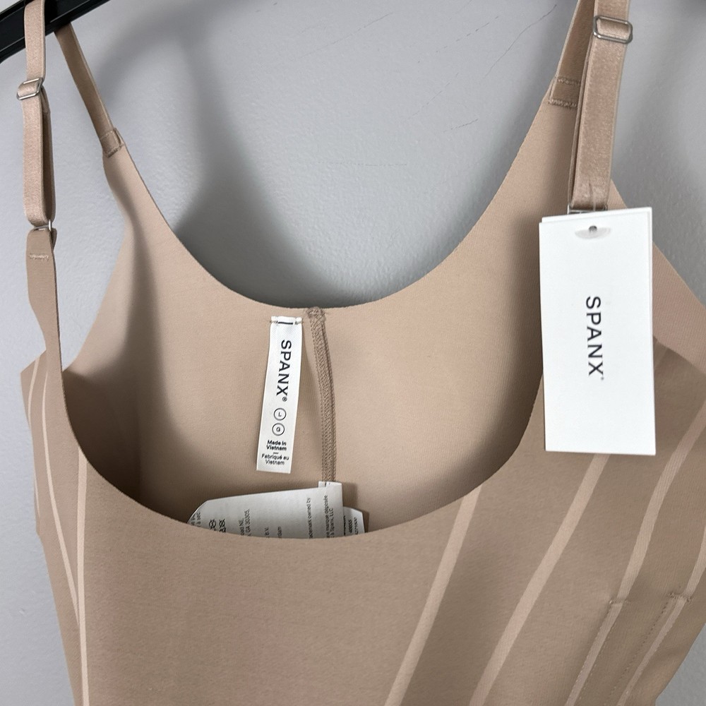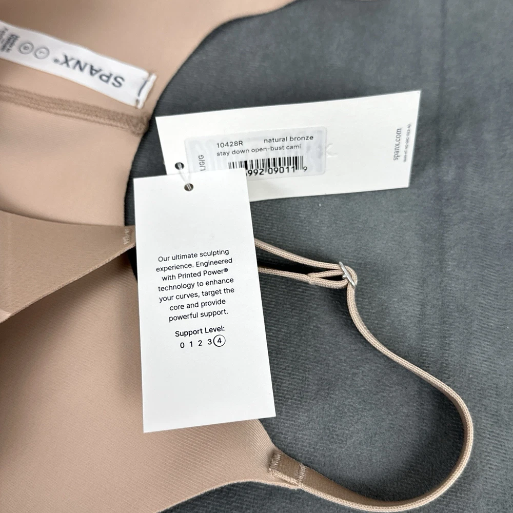 Listed is a SPANXsupersculpt TotalContour Stay Down Open-Bust Cami in Natural Bronze, size large. New with tags. Lying flat without stretching, waist across 13". About 15.5" across underarm to underarm. Cinched & Snatched: Built-in flexible boning comfortably contours your curves for a sculpted silhouette LYCRA FitSense Technology: Strategically printed for targeted waist shaping, tummy control, and thigh smoothing Open-Bust Design: Wear with your favorite bra for optimal lift and a natural shape Adjustable Straps: Customize your fit without pinching or digging Breathable & Quick-Dry: Stay cool and comfortable all night long Free-Cut Hems: Seamless edges for all-day comfort and invisibility under clothes. Inner gel edge at bottom helps stay down. Long-Lasting Wear: Engineered for durability and daily confidence Shipping costs are calculated to reflect shipping service rates based on weight and distance traveling. Thank you for looking!