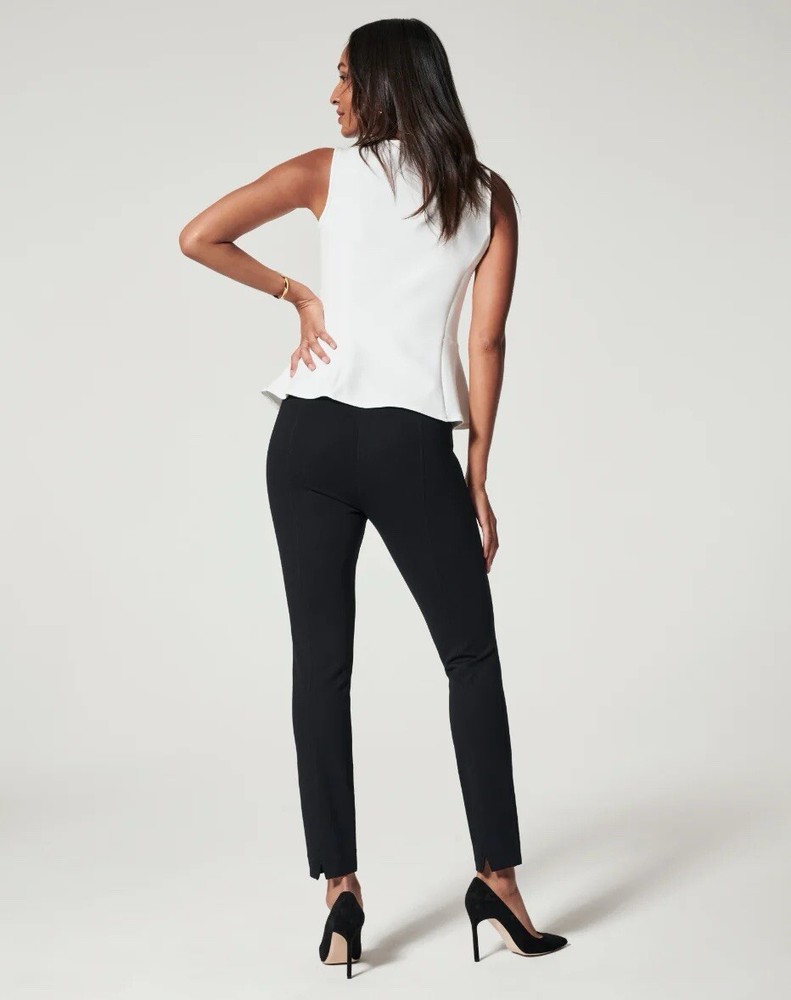 SPANX The Perfect Pant Ankle Back Seam Skinny Black Pants Size Small Retail $148 Size small EUC 13.5” across the waistband 36” long 26” inseam 10” rise The Perfect Pant in Ankle Back Seam Skinny is your new go-to for any outfit or occasion. Thanks to—seriously, magical—smoothing ponte fabric and a comfortable, pull-on design, the Ankle Back Seam Skinny offers a sleek look, a great butt and features a skinny-leg cut, making for a style so flattering, you'll wear them again and again! Best. Pants. EVER. Pull-on design for a completely smooth front4-way stretch, premium ponte fabricHidden tummy shaping Machine-washable for easy care Body: 68% Rayon, 28% Nylon, 4% Elastane. Lining: 80% Polyester, 20% Elastane.Machine Wash Cold, Gentle Cycle. Only Non-Chlorine Bleach When Needed. Line Dry. Low Iron If Needed Style 20251r Retail $148