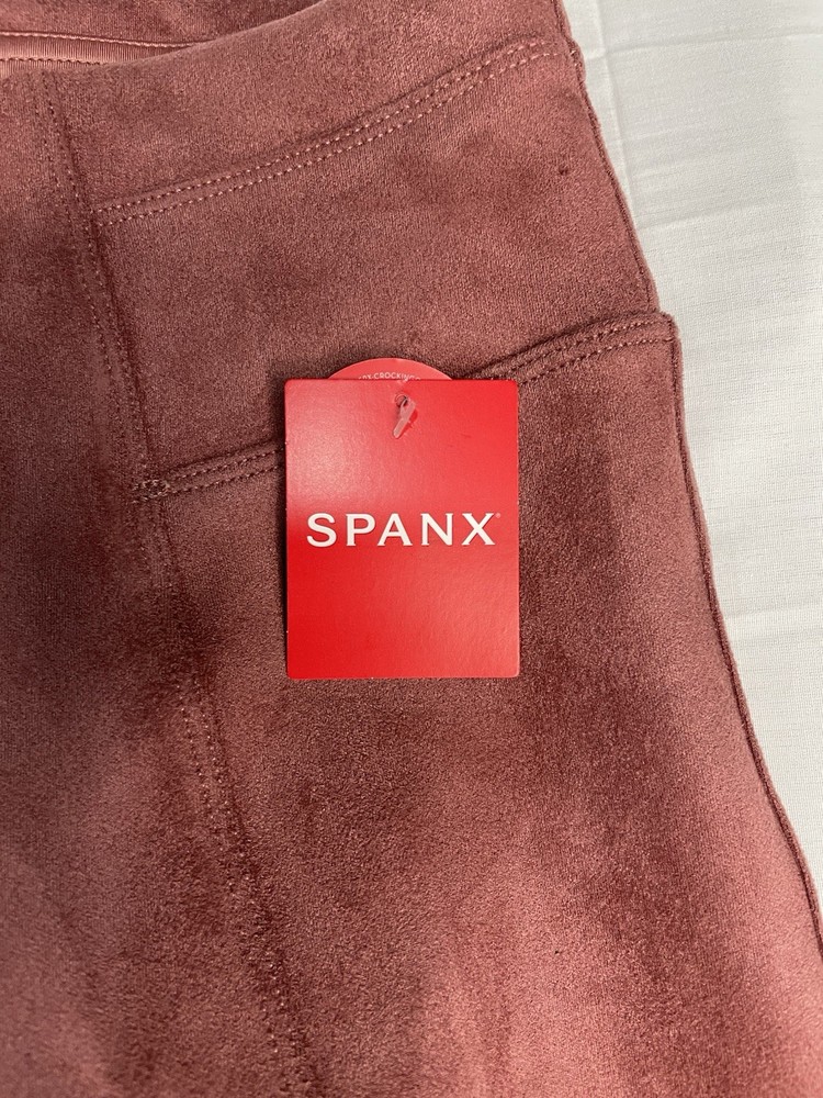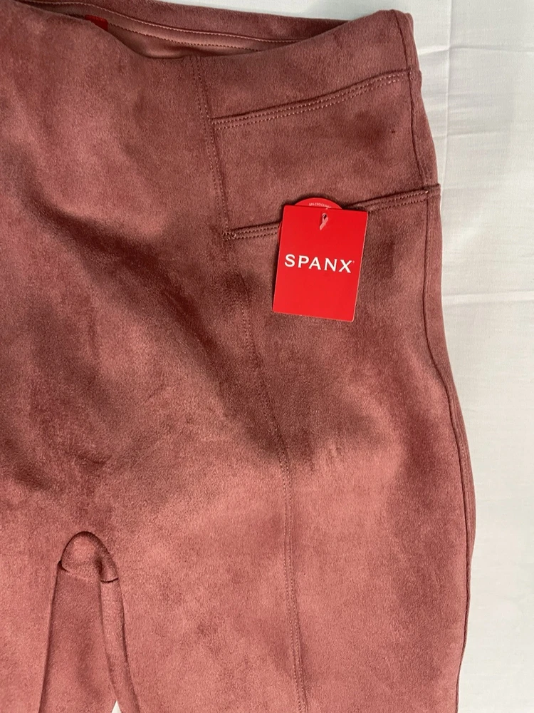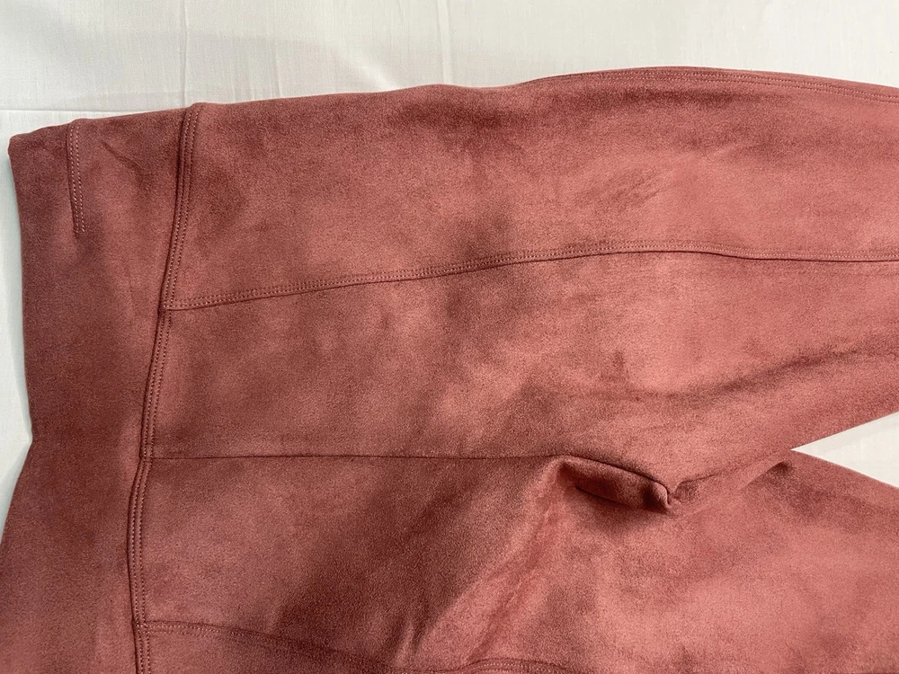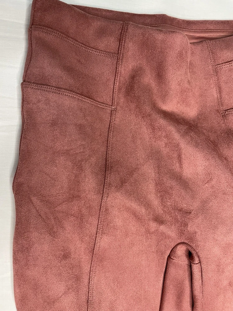 SPANX Women’s Faux Suede Leggings Rich Rose Seamed Stretch Size Medium NWT