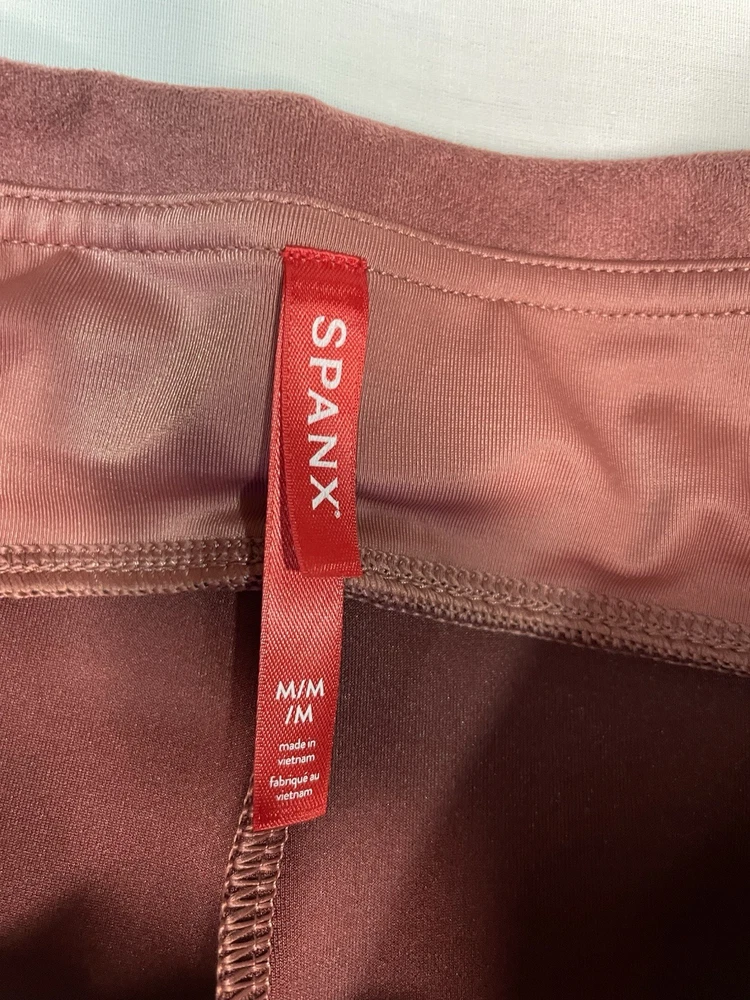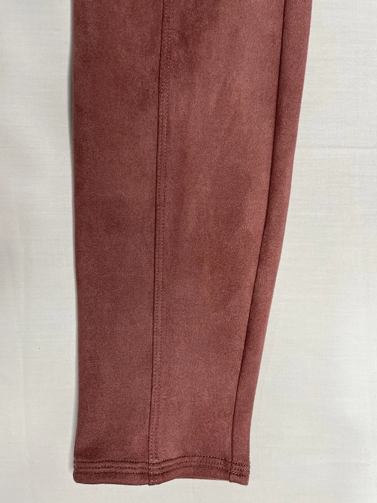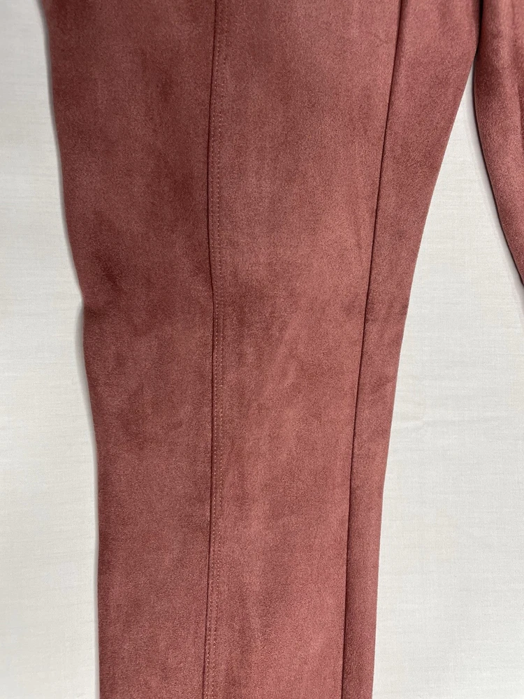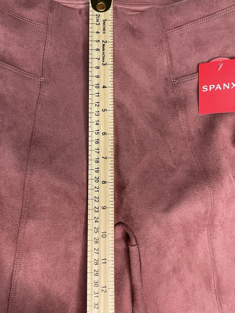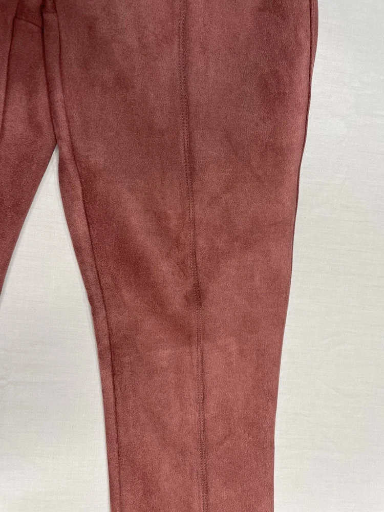 SPANX Women’s Faux Suede Leggings Rich Rose Seamed Stretch Size Medium NWT