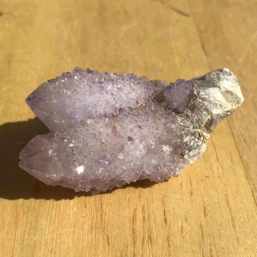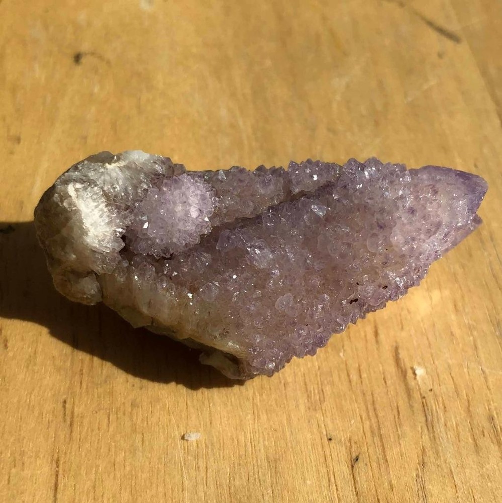 Amethyst arrived. It looks as beautiful as described. Great customer service and communication. Fast shipping and quick delivery. Package is well wrapped and arrived in perfect condition. Great seller.