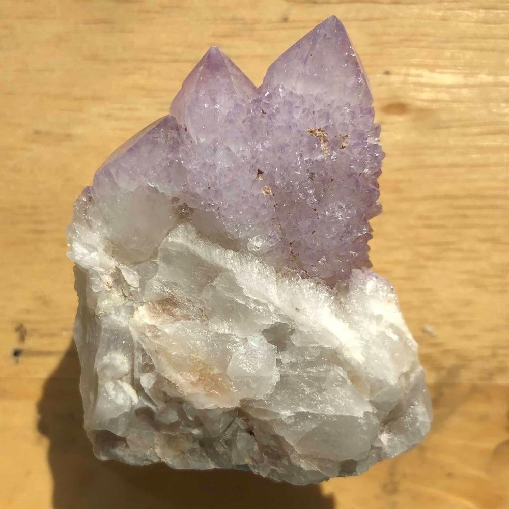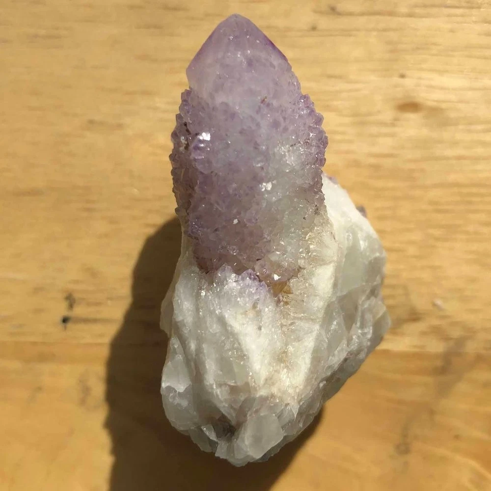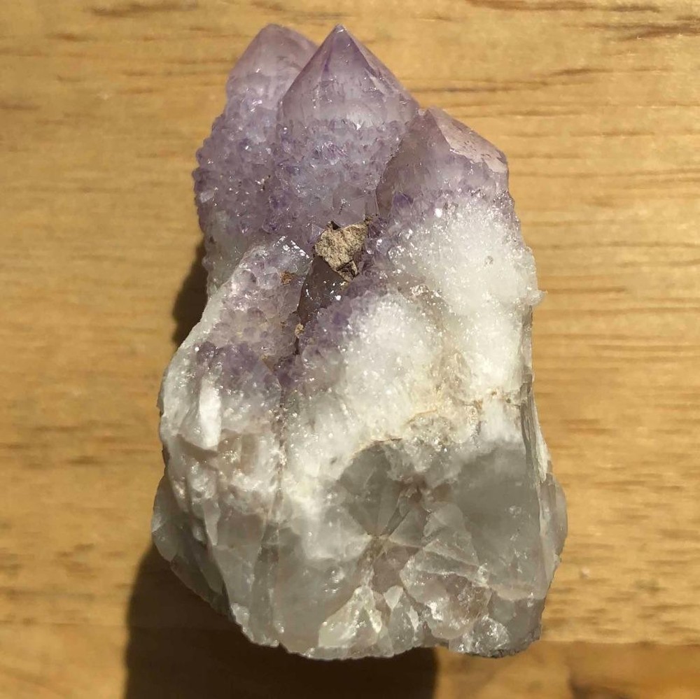 Amethyst arrived. It looks as beautiful as described. Great customer service and communication. Fast shipping and quick delivery. Package is well wrapped and arrived in perfect condition. Great seller.