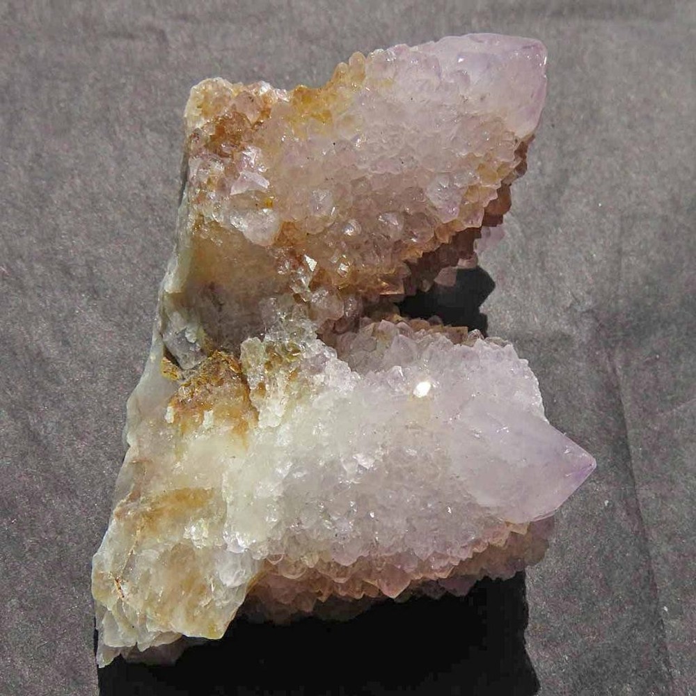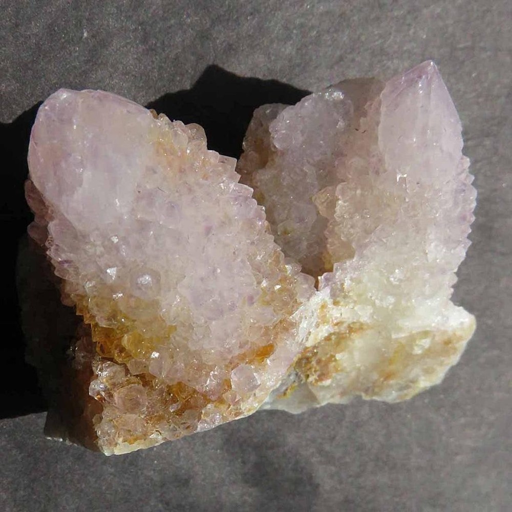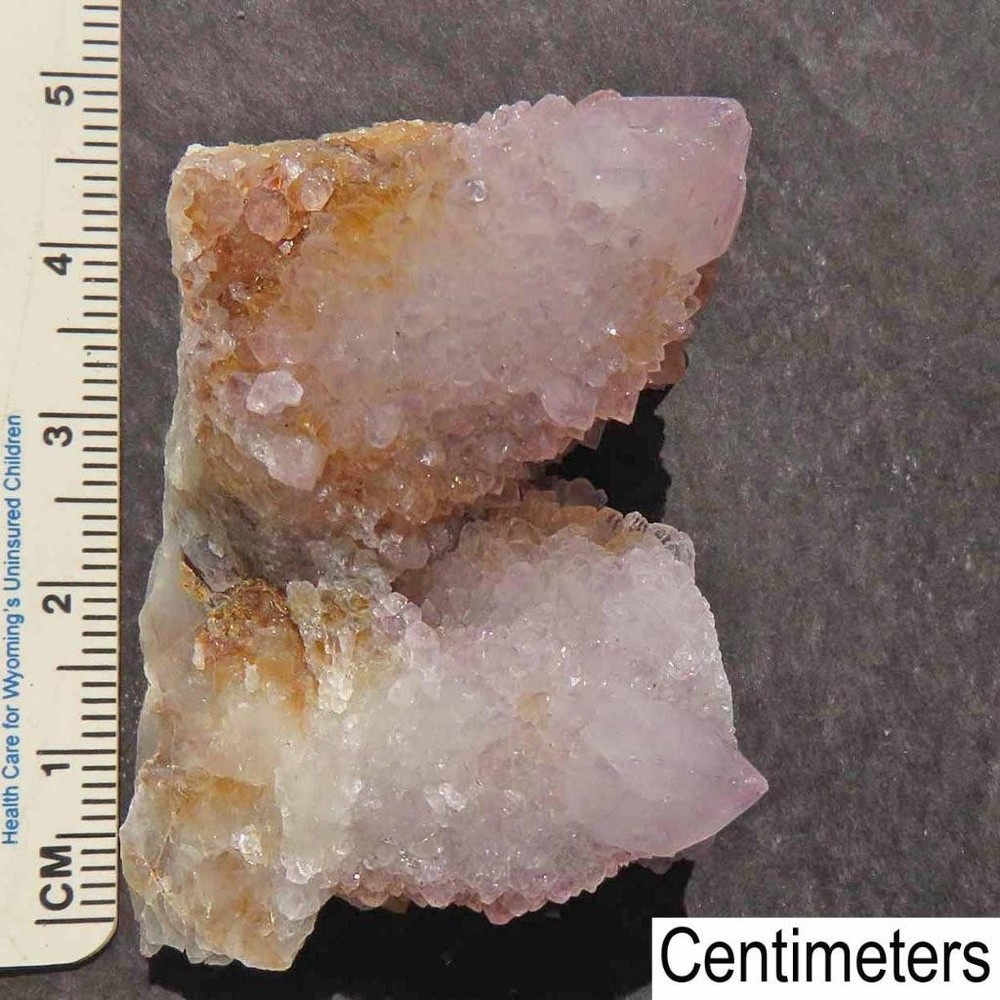 Cactus Quartz or Spirit Quartz Approximate size shown by ruler. Numbers are centimeters. View My Other Items For Sale Visit My eBay Store Add me to your Favorite Sellers A cactus or spirit quartz is a quartz crystal that is encrusted by a second generation of smaller crystals grown on its prism faces. These crystals were first discovered in 1986 in the Magaliesberg Mountain Range near Pretoria, South Africa. It occurs as quartz, citrine and amethyst, and comes in a wide range of colors, including purple amethyst, violet amethyst, smoky, milky clear and golden citrine. FAQ/Tips Crystals are priced by quality, color and size. Purple amethyst is more highly prized and will cost more for a smaller lesser quality crystal. Lavender is the most common color and where you will find the best quality/value for price Crystals change colors with changes in type angle and intensity of light. Color may also vary between monitors. Pictures were taken in bright natural light. We do our best to give you many views so you can judge the quality of the given crystals. If you have questions please ask before bidding or buying. Many of the crystals have special color properties: Many have phantoms, not just the ones we’ve indicated. Some have “floating” purple tips. The placement of darker purple against purple or white crystals appears to change as the crystal is turned. Many are a mixture of citrine and amethyst. The ones called “Golden Healers” or “Sunshine” have a rainbow effect on crystal faces. We value your feedback please contact us with problems. Items are returnable. Get Images that Make Supersized Seem Small. Attention Sellers - Get Templates Image Hosting, Scheduling at Auctiva.com. Track Page Views With Auctiva's FREE Counter