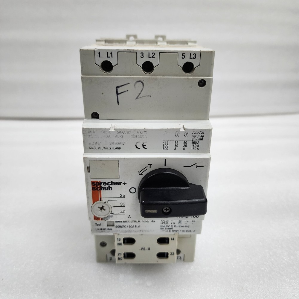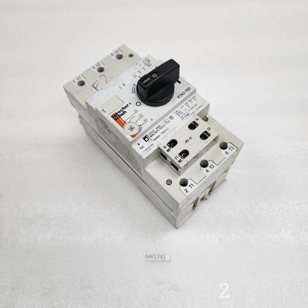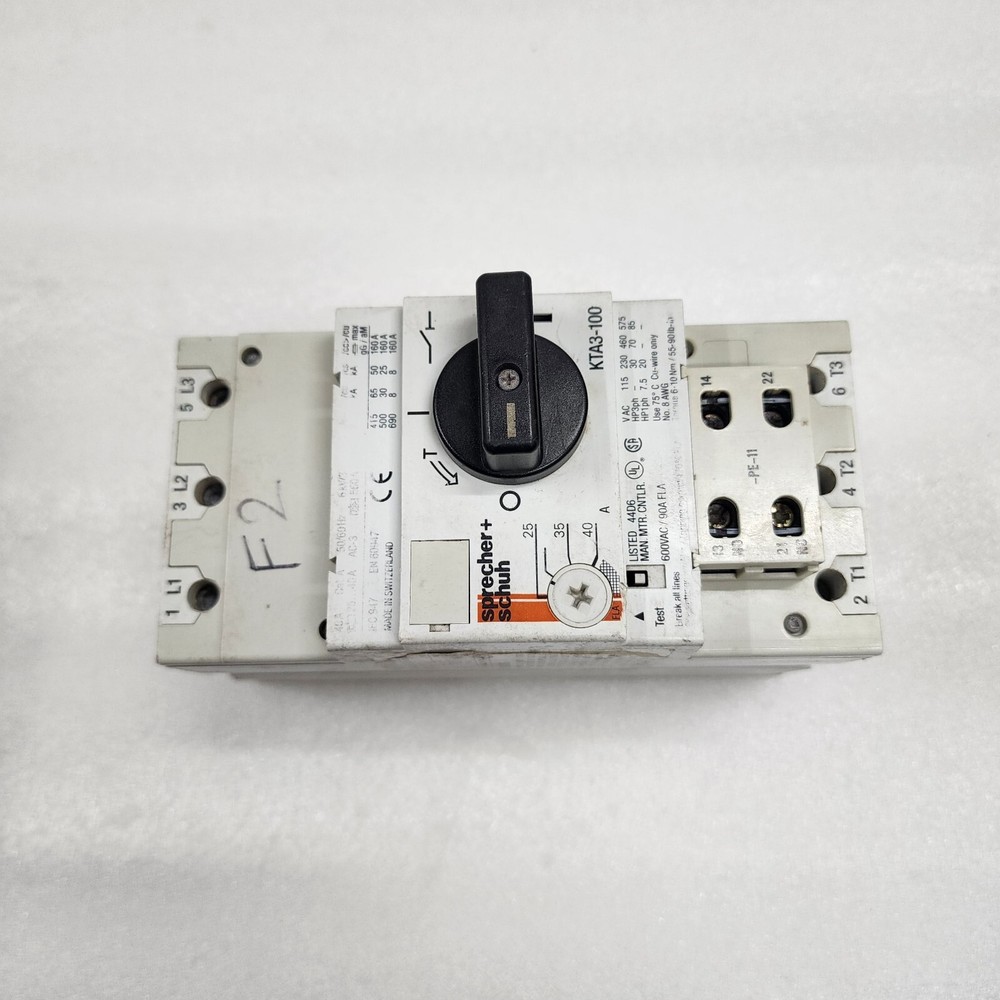 We are pleased to offer SPRECHER + SCHUH KTA3-100 MOTOR CIRCUIT CONTROLLER 25-40A Product Detail: SPRECHER + SCHUH KTA3-100 MOTOR CIRCUIT CONTROLLER 25-40A MODEL: KTA3-100 TYPE: MOTOR CIRCUIT CONTROLLER 25-40A Shipment processing time: All orders are processed within 1-2 business days. Orders are not shipped or delivered on weekends or holidays. Shipment confirmation & Order tracking: You will receive a Shipment Confirmation email once your order has shipped containing your tracking number(s). The tracking number will be active within 24 hours. Customs, Duties and Taxes: We are not responsible for any customs and taxes applied to your order. All fees imposed during or after shipping are the responsibility of the customer (tariffs, taxes, etc.). Damages: In case of damage or lost of shipment during transit, We will investigate the matter and provide the satisfactory resolution. Returns Policy: We offer return or exchange of ordered item up to 30 days of receipt of goods in subject to certain condition. In case of damaged goods we shall offer the replacement or refund for the ordered item. If you require any more details, request you to send us the direct message through eBay for early resolution. Thanks