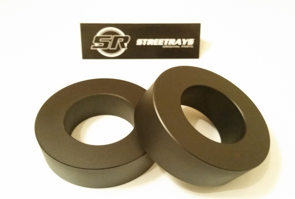 StreetRays [Originals] Billet Aluminum Jeep JK Front 1.0" Leveling Lift kit Wrangler 07-18 (BLACK) CNC Machined Finished (BLACK Color) Application: Jeep Wrangler 07-18 JK StreetRays [Originals] parts are 100% machined right! here in Central Texas. Matched with the best hardware which is also sourced here in USA. Quality material & precision machining is the main ingredients of all our parts. StreetRays [Originals] lift kit will raise the front of your Jeep Wrangler (JK) by an actual 1.0". Our kit can be installed in about 1-2 hours with basic tools. Our spacers are CNC machined out of 6061 T6 billet aluminum in Central Texas. This kit is the fastest & also the most inexpensive way to raise the sagging front end of your Jeep Wrangler. And we can assure you that our spacers are the strongest on the market and come with a 100% satisfaction guarantee & full warranty. Our kit will also include all the correct hardware and a general instruction. We recommend professional installation if you don't have the correct set of tools. IMPORTANT NOTE: The lift spacer thickness and final lift amount is Not a 1 to 1 ratio due to the suspension geometry.