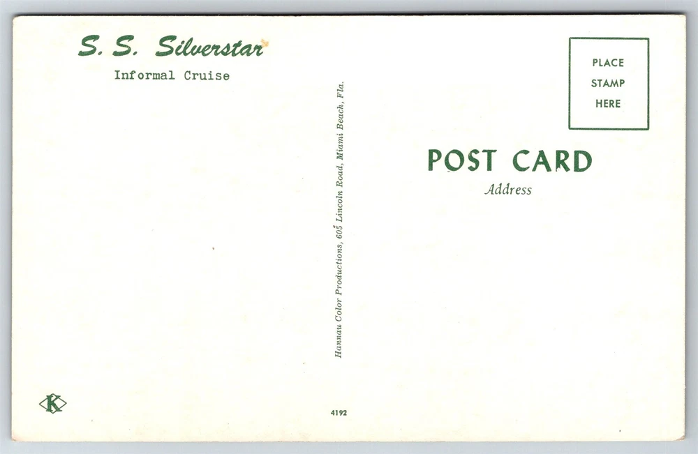 SS Silverstar Informal Cruise Steamship Ocean Liner Ship C1939 Postcard G6 Thank you for visiting! This is a standard size postcard, 3.5" X 5.5". In stock, usually ships within 24 hours of your purchase. Please ask questions if you are unsure about anything. Our goal is for your complete satisfaction with the postcard and your experience. Check all my other listings in my store. RETIREDWITHBOOKS Powered by SixBit's eCommerce Solution
