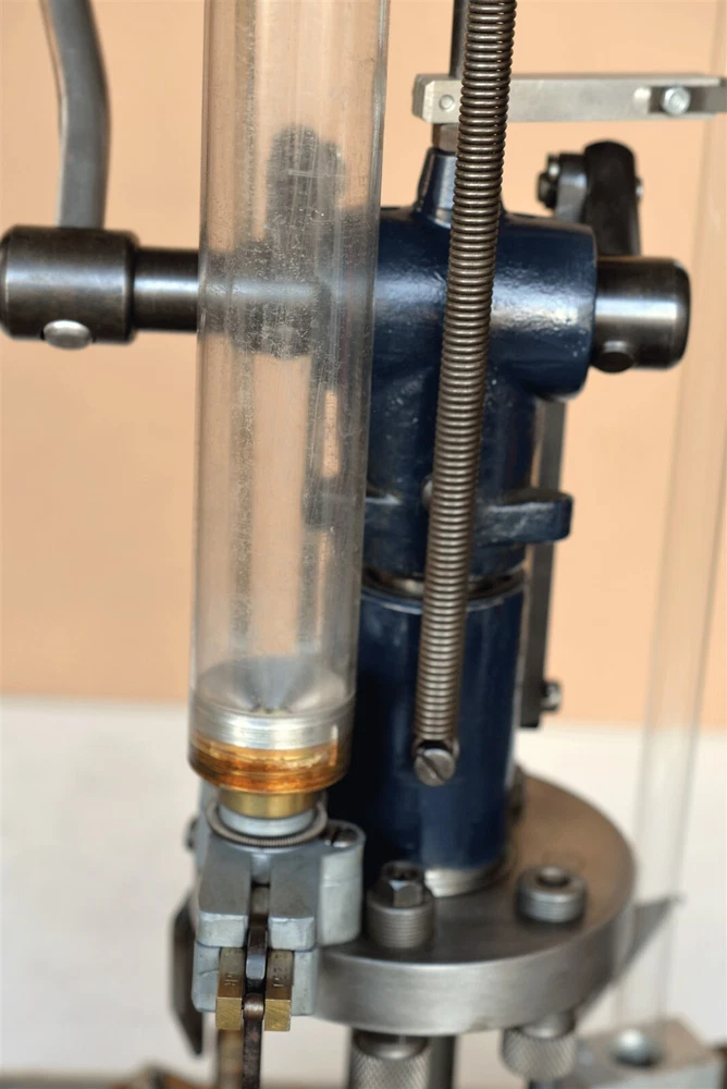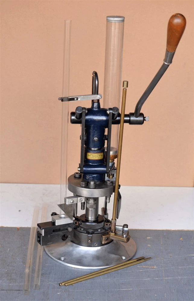 Star Universal manual indexing progressive reloading press with 9mm Luger dies with carbide sizer, expander stem, seater, and taper crimp die. Size 00 powder slide housing. Size 00 powder bar (5.0 grains W231), Hulme case feeder with (3) 17" feed tubes, and (2) primer pick-up tubes. Used in good working condition. Shipping costs listed are for USA Zip Codes only. Others pay actual shipping costs. Powered by SixBit's eCommerce Solution
