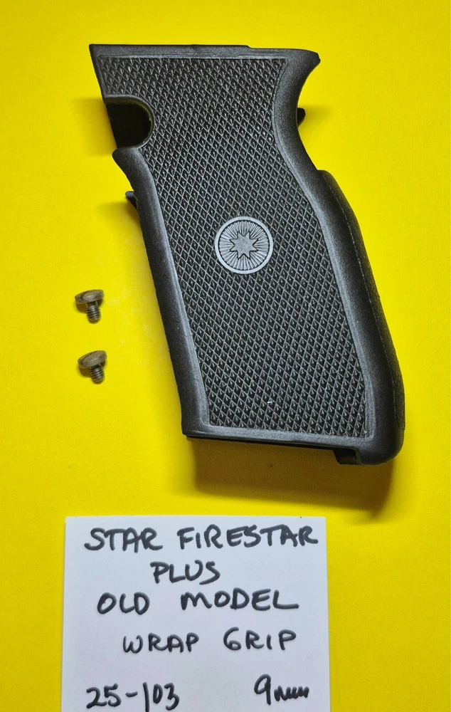 Type:GRIP W/ SCREWSFor Gun Make:StarMaterial:PlasticFeatures:FACTORYColor:BlackGauge/Caliber:9 mm LugerMPN:noneUPC:DOES NOT APPLYBrand:StarCountry/Region of Manufacture:SpainFor Gun Type:HandgunModel:FIRESTAR PLUS OLD MODELgtin13:DOES NOT APPLY