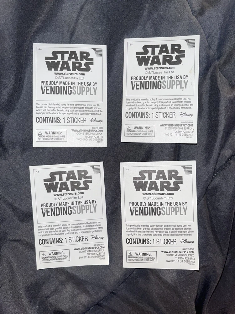 STAR WARS VENDING STICKER Lot 4/ 12 STICKERS 2015