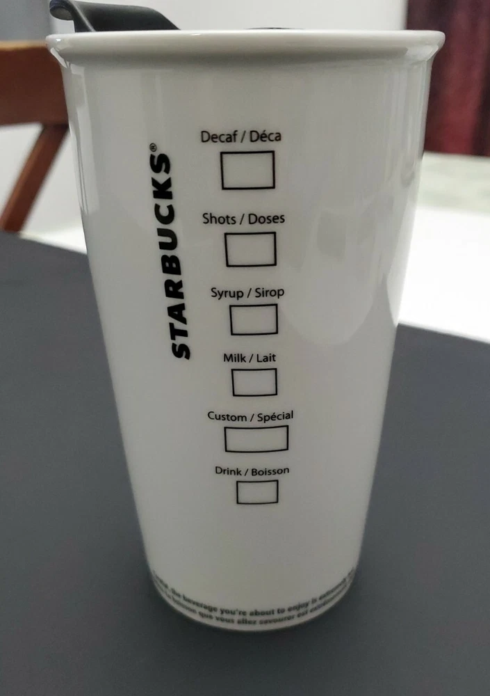 Size:16oz.Date of Creation:2011Theme:Coffee & TeaType of Advertising:StarbucksColor:WhiteBrand:StarbucksOriginal/Reproduction:OriginalFeatured Refinements:Starbucks Travel MugCountry/Region of Manufacture:ChinaModified Item:No