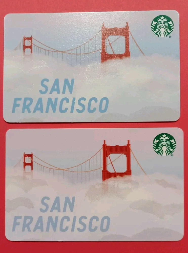 These rare and highly sought-after Starbucks gift cards from 2019 features two San Francisco cards and is a must-have for any coffee and tea collector. With its beautiful design and impressive selection of featured refinements, this card is sure to be a standout addition to your collection. The cards are in mint shape and has been well-maintained, ensuring its long-lasting beauty. It is perfect for anyone who loves Starbucks and coffee culture, and is a great way to show your support for your favorite local coffee shop. Don't miss out on this amazing opportunity to add a piece of Starbucks history to your collection. No value.