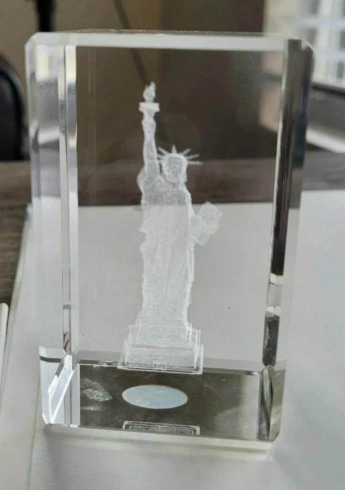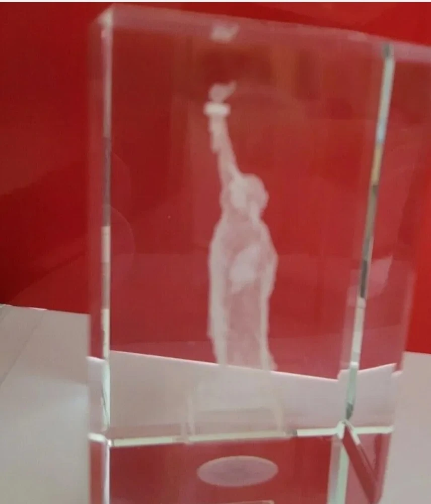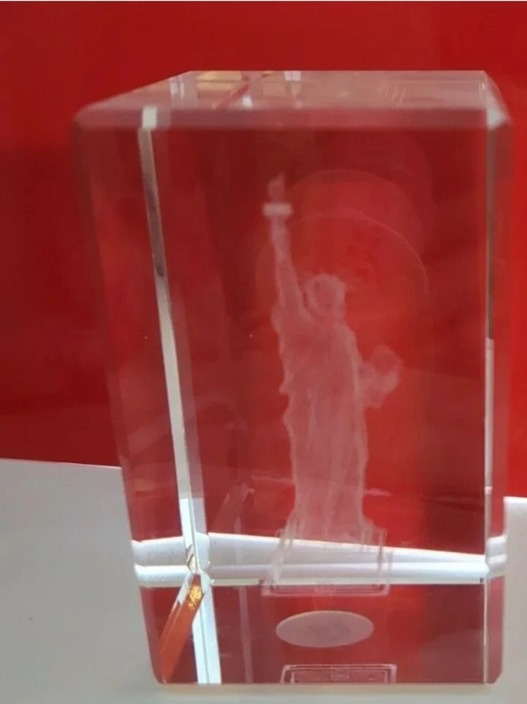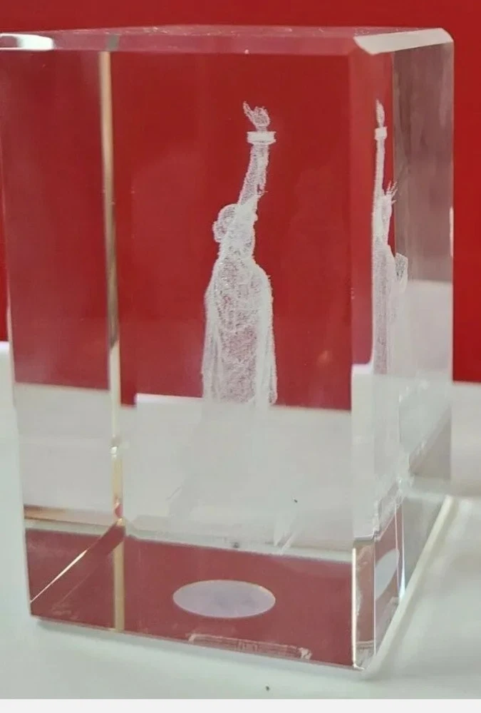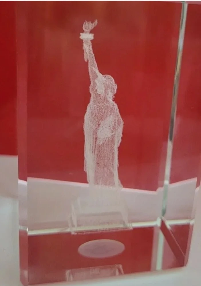 STATUE OF LIBERTY NEW YORK 3-D LASER ETCHED IN GLASS PAPERWEIGHT PO C6.