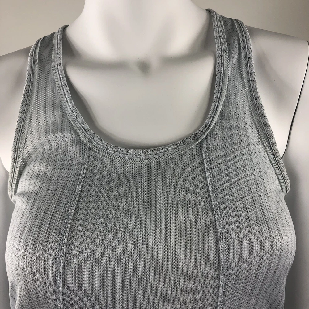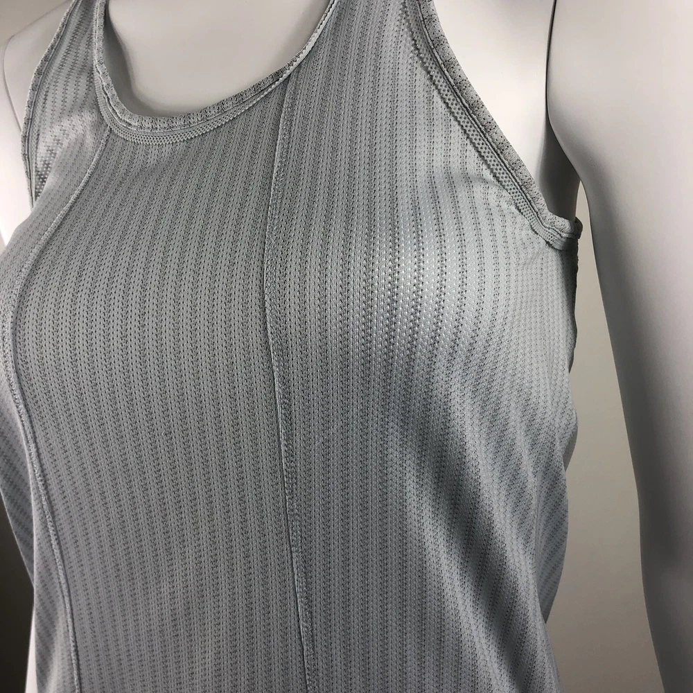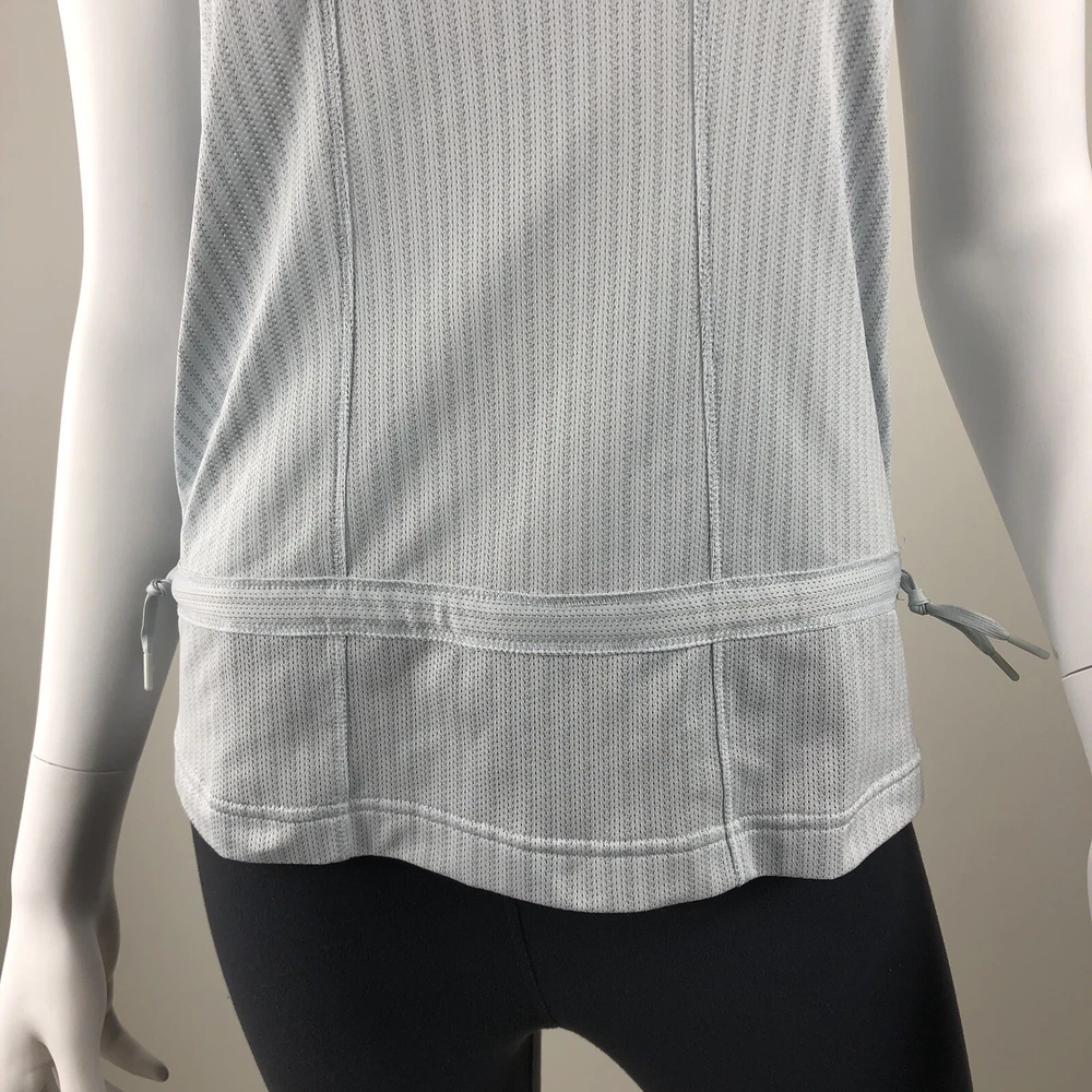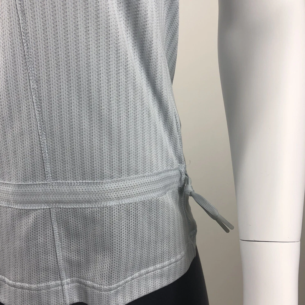 Breathable tank for the gym. Ties at the waist can be cinched for your favorite inverted yoga poses! Armpit to armpit 15.5” Length 25.5”