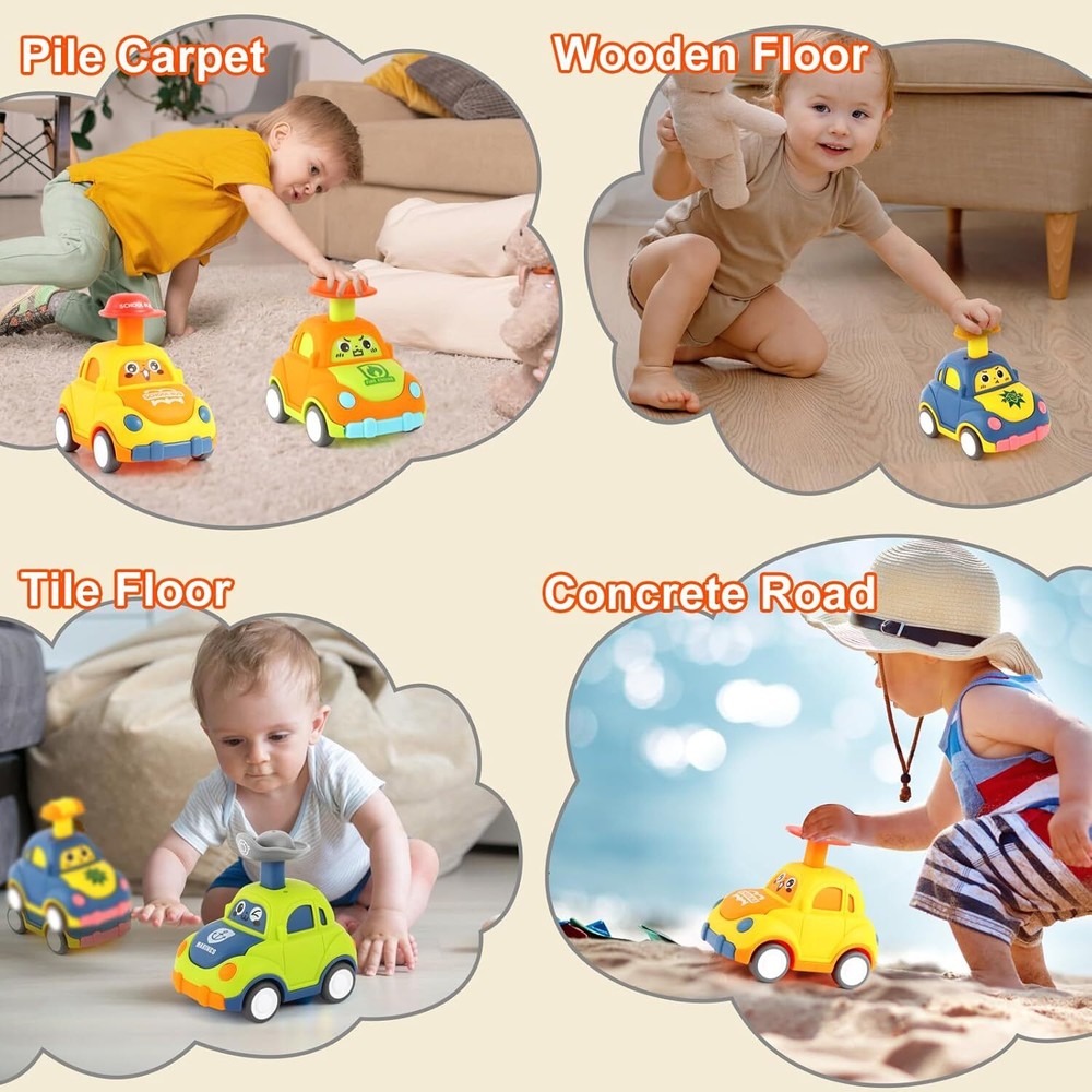 Free eBay listing template designed by dewiso.com Car Toys for Toddlers 1-3 One Year Old Boy Birthday Gift for Boys Girls 1-3 Pull Back City Vehicle Toys Easter Basket Stuffers Party Favors for Kids FREE AND FAST SHIPPING! 【Color cartoon toy car】 The toy cars come with 4 PCS cute cars of police, fire engine, school bus. Bright colors and stunning design. Perfect as gifts for kids for birthday party classroom prizes, Easter basket stuffers, pinata stuffers, goodie bags stuffer for kids. 【Tons of Fun】 These little pullback cars Toys are always a hit at playtime. They help kids with important early developmental skills too. They can help improve hand-eye coordination, sensory-motor skills, perception, and imagination while encouraging imaginative and pretend play. 【Press and Go Toy Cars】 No batteries are needed with these cartoon cars toy. Simply press it down, release them, and watch how they pop a wheelie! The little cute vehicles are also extremely portable, so boys and girls will always be entertained when you're on the go, children can complete a competitive race anytime, anywhere. 【Safe Toddlers Toy Cars】 Made of sturdy Non-toxic ABS Material. Perfect size for baby's hands, smooth edge prevents from hurting hands. 【Party Favors for Kids】Birthday party favors for kids boys & girls of all ages, Classroom reward prizes & incentives, treasure chest box toys for the classroom, quiet stress toys for school, carnival prizes, end-of-year student gifts, Bulk toys educational party favors for kids, bulk goodie bag fillers, Christmas Stocking Stuffers, and Gifts for kids. Product We offer a 30-Day Return Policy on items which you are not completely satisfied with. You have the option for a full-refund or an exchange of the item. No returns are available on items shipped outside of the US . Shipping We offer Free Shipping to the US and ship within 2 business days of payment, usually sooner. We use UPS express shipping. That's why your products are usually delivered within 3 days . Contact We try our very best to make sure every customer is completely satisfied. If there's a problem , message us! We're happy to help. 24/7 live chat available.