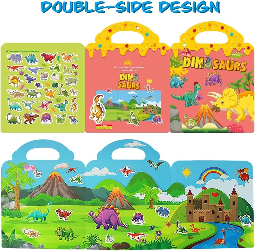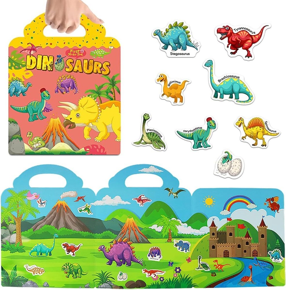 Free eBay listing template designed by dewiso.com Reusable Sticker Books for Kids, Travel Removable Toddler Dinosaur Sticker Books for 3 4 5 Year Old Girls Boys Birthday Gifts Educational Learning Toys FREE AND FAST SHIPPING! Handle Design & DIY Fun: The travel sticker book with portable handle and sticker storage, easy to carry, perfect for family on the go; The static stickers also can stick onto windows, smooth surface like books, glass, mirrors and more, Bring lots of fun to your home and daily life Reusable Sticker Books for Kids: The dinosaur sticker books as educational toy are suitable for children use their imagination to put stickers on any position of the books, you can remove them anytime and reuseable, won't leave glue marks on the surface when removing Durable Toddler Sticker Book: Our removable stickers for kids made of durable PVC material, non-toxic, not easy to fade and tear, no peculiar smell, with clear printing and bright color, The static stickers is good helper and travel toy for kids ages 3-5 to peel and play Playing & Learning: Early childhood is a critical period of intellectual development, Stickers with different themes can bring different cognition and experience to children. Corresponding words on the stickers also can help them to learn some simple vocabularies, satisfies their curiosity, good for promoting their imagination, creation and hand-on ability Ideal Gift Toys for Toddler 3 4 5 6: The adorable animal and unknown world must be the children want to explore, Great birthday christmas new year gifts for 3 4 5 6 years old boys & girls, Funny scenes and removable lovely stickers game book not only can be used as book window clings, but also can play the children's imagination Product We offer a 30-Day Return Policy on items which you are not completely satisfied with. You have the option for a full-refund or an exchange of the item. No returns are available on items shipped outside of the US . Shipping We offer Free Shipping to the US and ship within 2 business days of payment, usually sooner. We use UPS express shipping. That's why your products are usually delivered within 3 days . Contact We try our very best to make sure every customer is completely satisfied. If there's a problem , message us! We're happy to help. 24/7 live chat available.