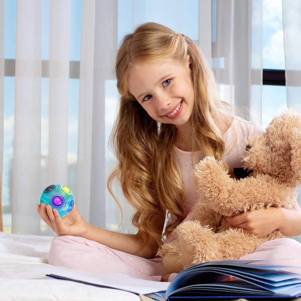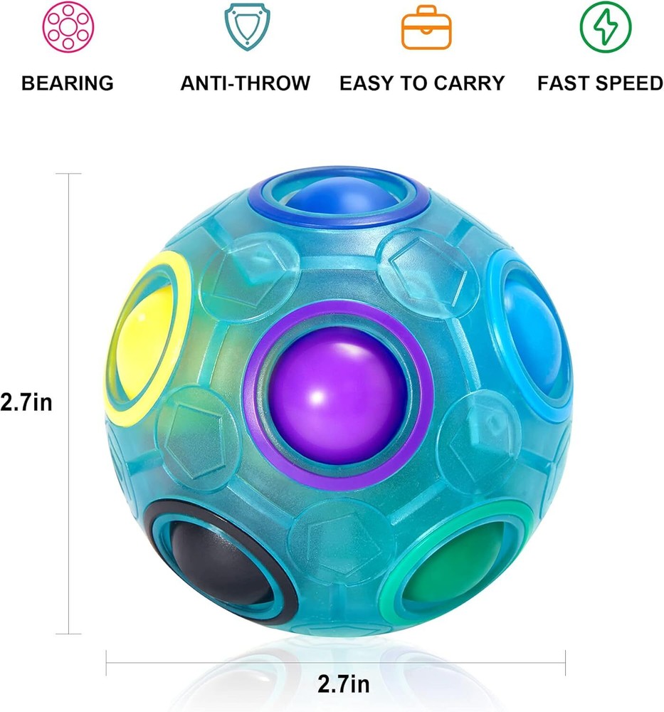 Free eBay listing template designed by dewiso.com Vdealen Magic Rainbow Puzzle Ball, Fidget Ball Puzzle Brain Teaser Fidget Toy for Boys & Girls- Birthday Party Easter Valentines Christmas Stocking Stuffers for Kids Teen & Adults(Blue) FREE AND FAST SHIPPING! Safe Material- This rainbow puzzle ball crafted with safe high quality ABS material, lightweight and lies comfortably in the hand. Fun to Play- This is a big rainbow ball with 12 holes and 11 colorful small balls inside, and a sponge in the center that allows the colorful balls to slide from one slot to the next when you press on them. You need to match all 11 balls to their corresponding colored rings to complete the puzzle. Enjoy Your Time- The diameter of this puzzle fidget ball is only 7cm, small, handy and can be taken anywhere. It's a ideal pastime toy for children, teens, and adults, whether at home, at the workplace or on the go. Say goodbye to boredom! Good for All Ages- The magic puzzle ball is a puzzle game that requires concentration, careful observation and thinking, which can exercise the brain and improve the problem solving ability. And it can help kids reduce screen time and increase thinking skills, relieve work pressure of adults. Perfect Gift- Christmas, Birthday, Party, Easter, Children's Day and etc are the perfect opportunity to gift this cube ball toy to family and friends. Nice stocking stuffers toy for kids Teens Adults. Product We offer a 30-Day Return Policy on items which you are not completely satisfied with. You have the option for a full-refund or an exchange of the item. No returns are available on items shipped outside of the US . Shipping We offer Free Shipping to the US and ship within 2 business days of payment, usually sooner. We use UPS express shipping. That's why your products are usually delivered within 3 days . Contact We try our very best to make sure every customer is completely satisfied. If there's a problem , message us! We're happy to help. 24/7 live chat available.