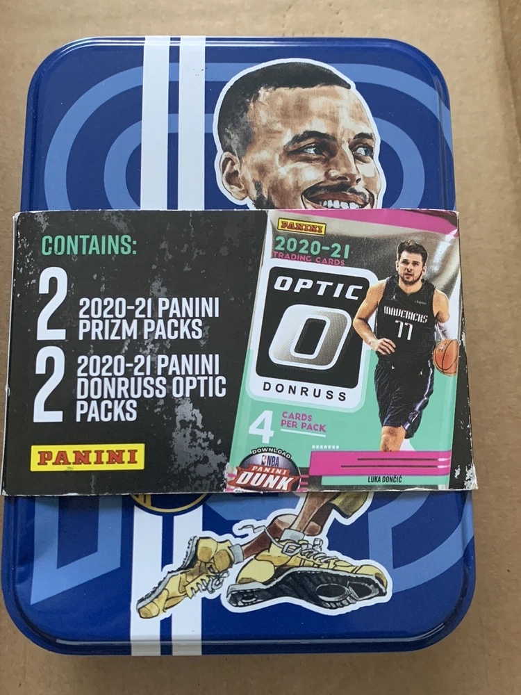 This collectible tin box is a must-have for any fan of the Golden State Warriors and basketball enthusiasts. It is specially designed for the 2020-21 Panini Prizm Optic sports trading card set, which features the legendary Steph Curry, among other top players in the National Basketball Association (NBA). The tin box is a collector's edition, and it is perfect for storing your prized possession of trading cards. Acquire this product to showcase your love for basketball, the NBA, and the Golden State Warriors.