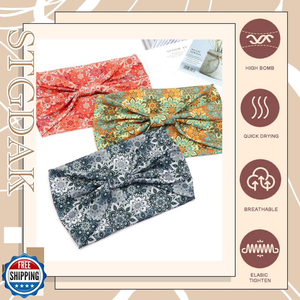 STGDAK Headbands Stretchable Hair Bands Fashion Turban Knotted Head Bands Workout Running Sweatband Breathable Head Wrap African Style Hairband Accessories for Women Yoga 3 Pack Features Pressure-Free Hairbands: If You Have An Uncomfortable Or Annoying Wearing Experience Caused By Other Hair Accessories, Then Our Products Can Bring A New Feeling And Enlarge Your Perception Of Wraps Headbands As Their Outstanding Elasticity, Fitting Your Hair Effortlessly And Making Your Hair More Stylish In A Comfortable Way. Reliable Turbans Hairbands For Workout: No Matter Whether You Are Hiking, Boxing, Cycling, Running, Yoga, Soccer, Or Any Other Intense Sports, These Non-Slip Sweatbands Can Grab Your Hair Securely, Preventing Hair From Sliding And Keeping Sweat Away From Your Eyes. Cozy Fabric: These Elastic Hair Bands Are Made Of Flexible And Soft Material That Can Provide A Pleasant Wearing Experience For You, Each Is 9.45 Inches In Length And 5.5 Inches In Width, You Won't Feel A Trace Of Roughness While Touching Them. The Harmless Fabric Makes These Head Wraps Suitable For Women Of Almost All Ages. Convenient And Efficient: These Quick-Drying Head Wraps Have Good Sweat Absorption, Eliminating Your Concerns About Messy Hair. Made Of Durable Material, They Are Easy To Clean And Maintain Their Lovely Appearance, Making Them A Must-Have Accessory For Daily Life. Diverse Applications: These Fashion Hair Accessories Are Suitable For Exercises Such As Yoga, Badminton, Tennis, Soccer, Basketball, Or Any Other Sports. They Can Match Your Different Clothing Well, With Stylish And Sophisticated Patterns Design, Which Can Enhance Your Charm Effortlessly. Shipping Free & Fast Shipping: We offer free shipping to most of the USA with a normal delivery time of 3-7 days. However, due to the current situation, additional delivery time (up to 3 weeks) may be required for some items. Alternative Carriers: We may use alternative carriers (e.g., USPS, FedEx, UPS) to ensure your package arrives safely and on time. Due to the use of multiple carriers, we are unable to provide a tracking number automatically. Handling Time: Orders are processed and shipped within 1-2 business days of receiving cleared payment. Shipping Restrictions: Shipping to Alaska, Hawaii, Puerto Rico, Guam, and other US territories may incur shipping charges or delivery restrictions. Please contact us before ordering, or your order can be refunded/cancelled. State Restrictions: Certain items may not be shipped to California due to state regulations. Contact for Tracking Updates: If you require tracking updates or have any concerns about the delivery of your order, please feel free to contact us, and we will be happy to assist you. Return Policy 30-Day Hassle-Free Returns: If you are not completely satisfied with your purchase, you can return the item for free within 30 days of receiving it for a full refund or exchange. Easy Return Process: Contact us, and we will provide you with a prepaid return shipping label and detailed instructions. No Restocking Fee: There are no restocking fees for returns. However, the buyer is responsible for return shipping costs if the return is not due to a seller"s error. Refund Processing: Refunds will be processed within 1 business day of receiving the returned item in its original condition. Feedback Your feedback is extremely important to us. We strive to provide the best products and customer service possible. If you are satisfied with your purchase, please take a moment to leave us a positive review. If you have any concerns or issues with your order, please contact us before leaving negative feedback. We are committed to resolving any problems and ensuring your satisfaction. Contact Us If you have any questions or concerns, please feel free to reach out to our customer support team. You can contact us through the eBay messaging system. We are available Monday to Friday, 9:00 am to 5:00 pm EST, and we will do our best to respond to your inquiry within 24 hours. Thank you for supporting our small family business!