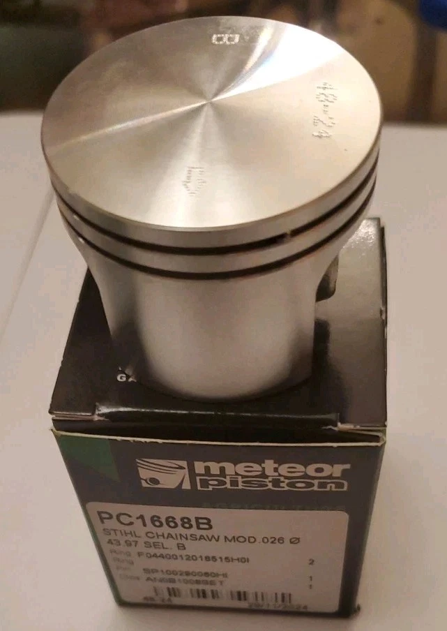 PLEASE CHECK OUT OUR OTHER EBAY STORE FOR MORE ITEMS: https://www.ebay.com/usr/chainsawredeemer85 You can also find me on YouTube with many useful videos how to work on your own equipment: @chainsawredeemer85 / incidental auditor PLEASE ENSURE FITMENT PRIOR TO PURCHASE. WE TRY OUR VERY BEST TO GIVE A DETAILED LIST OF MODELS OUR PARTS FIT. BUT SOMETIMES THERE MAY BE MORE MODELS, AND WE ARE ONLY HUMAN. SOMETIMES MISTAKES HAPPEN, WHICH IS WHY WE ALLOW RETURNS! PLEASE ASK ANY QUESTIONS YOU MAY HAVE AND IF YOU CANNOT FIND THE ITEM YOU ARE LOOKING FOR, PLEASE ASK AS WE MAY HAVE IT BUT NOT YET GOTTEN AROUND TO LISTING IT!!! SHIPPING: ENJOY COMBINED SHIPPING ON MULTIPLE ITEM ORDERS! ALL ITEMS WILL BE SHIPPED SAME OR NEXT DAY VIA USPS OR UPS DEPENDING ON SIZE. SHIPPING IS BASED ON EBAY INTERNATIONAL SHIPPING PROGRAM AND THUS ALL SHIPPING OPTIONS WILL SHOW ON THE LISTING. ALSO, WE LIKE TO CONSERVE MATERIALS AND REPURPOSE TO CUT DOWN ON WORLDWIDE WASTE. THIS MEANS SOMETIMES YOUR PACKAGE WILL BE USED MATERIAL----IF YOU WANT ALL BRAND-NEW BOX AND PACKING MATERIALS SIMPLY ASK AND YOU SHALL RECEIVE AT ABSOLUTELY NO EXTRA CHARGE This listing is for 1 METEOR PISTON KIT WITH CABER RINGS, WRIST PIN AND C- CLIPS 44MM for STIHL 026 44mm CHAINSAW. NOTE: I have selections A and AB. AB weighs 52.63oz and B is 53.66oz. This is the only difference found. You may request at checkout add a note which selection. Otherwise you will get whichever is available.