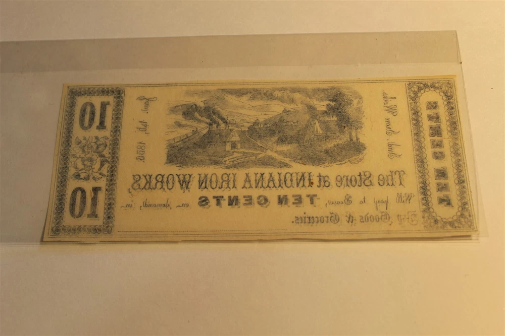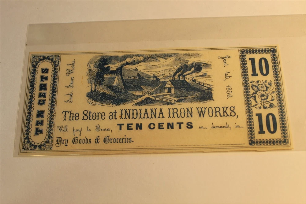 COLLECTABLES FROM VANGUARD COLLECTABLES ITEM DESCRIPTION STORE AT INDIANA IRON WORKS 10 CENTS 1856 UNC OBSOLETE /BROKEN BANK NOTE. NICE ATTRACTIVE NOTE WITH VIGNETTE OF IRONWORKS. SEE PICS. SEE PIC FOR CONDITION . PHOTOS ARE OF THE ACTUAL ITEM YOU WILL RECEIVE. SEE PICS. . . PAYMENT PAYPAL Local pickup on arrangement SHIPPING THANK YOU, STEVE VANGUARD COLLECTABLES BELLFLOWER, CALIFORNIA 90706 Powered by SixBit's eCommerce Solution