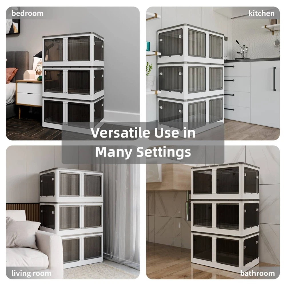 Home Payment Shipping Return Policy About Us Contact Us Feedback Title Other Standing Desk Desk Riser & Desk Converters Desk Bike Ergonomic Office Chair Fitness Upgrade your home organization with these collapsible stackable plastic storage bins, designed for maximum space-saving convenience and effortless access. Featuring transparent five-side panels, you can instantly identify what’s inside without opening the lid and store or retrieve items easily without unstacking your bins. Built from durable heavy-duty material and designed with secure grooved stacking, they’re perfect for storing clothes, toys, pantry items, snacks, tools, or camping gear. The foldable design eliminates installation and saves space when not in use, while the built-in wheels provide easy mobility anywhere in your home, dorm, RV, or office. A reliable, versatile, and stylish solution for clutter-free living. 【No-Installation & Fully Collapsible Design】 Simply unfold, snap the panels, close the lid — no tools required. When not in use, these collapsible storage bins fold flat and slide easily under beds, sofas, or shelves to save space. Perfect for small apartments and dorm essentials. 【Clear Panels for Quick Viewing】 Designed with transparent five-sided clear panels, these stackable storage bins allow you to see contents at a glance without opening the lid, ideal for fast organization and easy item search. 【5-Way Multi-Access Opening】 Convenient top lid, front door, and three side doors provide five access points to store or retrieve items without unstacking your bins. 【Heavy-Duty & Securely Stackable】 Made from thick, premium polypropylene with reinforced structure. The interlocking groove design ensures stable stacking without sliding or collapsing, great for long-term storage. 【Large Capacity & Multi-Room Organization】 Measuring 26.38"L × 18.5"W × 43.5/58"H, these large plastic storage bins are perfect for clothes, toys, books, snacks, pantry supplies, camping gear, office files, cleaning products, and more, suitable for kitchen, closet, bathroom, laundry room, classroom, RV, or garage. 【Smooth Mobility】 Built-in wheels allow easy movement throughout your home without lifting, ideal for dorm rooms, families, and seniors. Specifications: Color: Black/White Dimensions: 26.3'' L * 18.5'' W * 14.5 '' H(each layer) Layer: 3/4 Material: Polypropylene About us Return Policy Warranty Info Shipped About us Our Mission Make healthy life easier. To introduce creative solution geared towards creating better working environments that promote efficiency, productivity, and wellbeing. The goal is to help our clients achieve new heights of wellness and strike the perfect work-life balance through innovative and ergonomic solutions. Our Products We offer a wide range of ergonomic products for your home and office. All products are carefully engineered using the best materials to boost health and performance. Our Guarantee FlexiSpot never compromises on quality. Our products have been thoroughly tested with numerous Fatigue tests, Pressure Tests, Vibration Tests, and Temperature Tests. All of the products satisfy the most stringent qualifications around the world. Our Team We have over 600 innovative R&D engineers who imagine, design, and implement ergonomic workplace furniture solutions. Thanks to our R&D engineers, we have an impressive count of 1000 patents on record! At FlexiSpot, you’re guaranteed exceptional customer service regardless of your geographical location. Our customer service team is available 24/7 to attend to your needs all across the globe. We have numerous warehouses around the globe, including 13 in the US, guaranteeing a quick and convenient delivery experience for our customers. Return Policy General information for all returns All items must be returned in their original factory packaging and in “like new” condition. Items returned in other than “like new” condition will be subject to a 10% restocking fee. The restocking fee will be deducted from your refund. A Return Merchandise Authorization (RMA) number is required for all returns. Returns are processed and credited within 7 to 10 days of receipt. Returned items are subject to inspection prior to issuing a refund. You’ll be responsible for shipping the products to the return address provided with the RMA number. All returned items must be disassembled and repackaged as they were originally received. Items not returned in this condition may be subject to additional fees. We strongly suggest using a traceable and insurable shipping method when making your return. We are not responsible for returns lost or damaged in transit. 30-day risk-free policy You are free to return any item within 30 days of receipt. A 30-day risk-free policy applies to all items. No restocking fee is applied for items returned in “ like new ” condition. No shipping fee is applied for the return of the item. The 30-day risk-free policy is only for orders within the continental United States. Return after 30 days of receipt You are also free to return any item after 30 days of receipt. We want you to be completely satisfied with your FlexiSpot purchase, and we strive to provide expert guidance to help you choose the best possible products for your needs. We also understand that sometimes a product just doesn’t quite fit. That is why we make returns easy. Please send us an email with your return request along with the order number included. Also, please let us know the reason for your return. We will issue a Return Merchandise Authorization (RMA) number. Warranty Info Warranty Your satisfaction is our first priority. That's why we're pleased to offer warranty that covers defects in material or workmanship on all new FlexiSpot products This warranty applies solely to the original purchaser and is non-transferable. Only consumers purchasing FlexiSpot products from authorized FlexiSpot retailers or resellers may benefit from our limited 